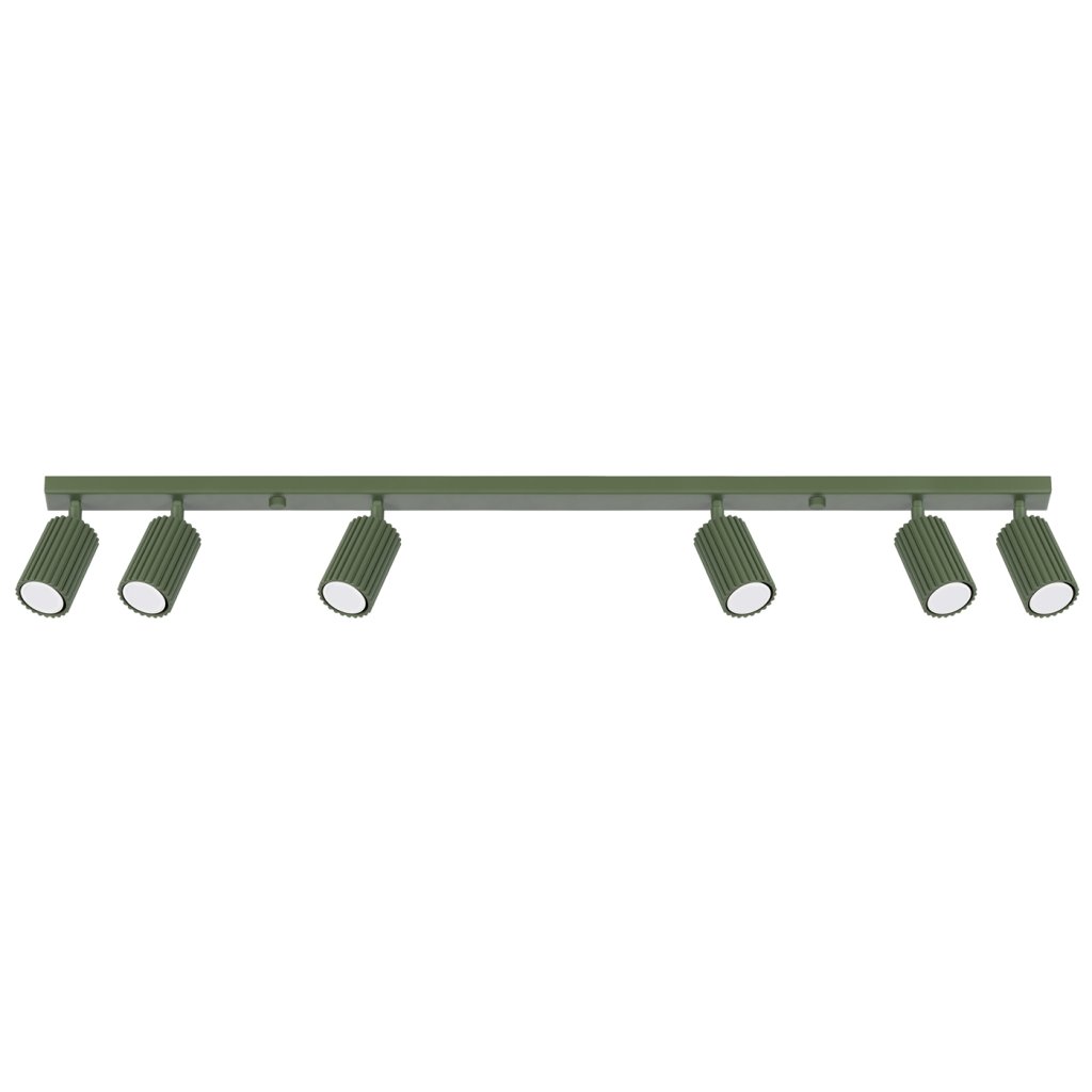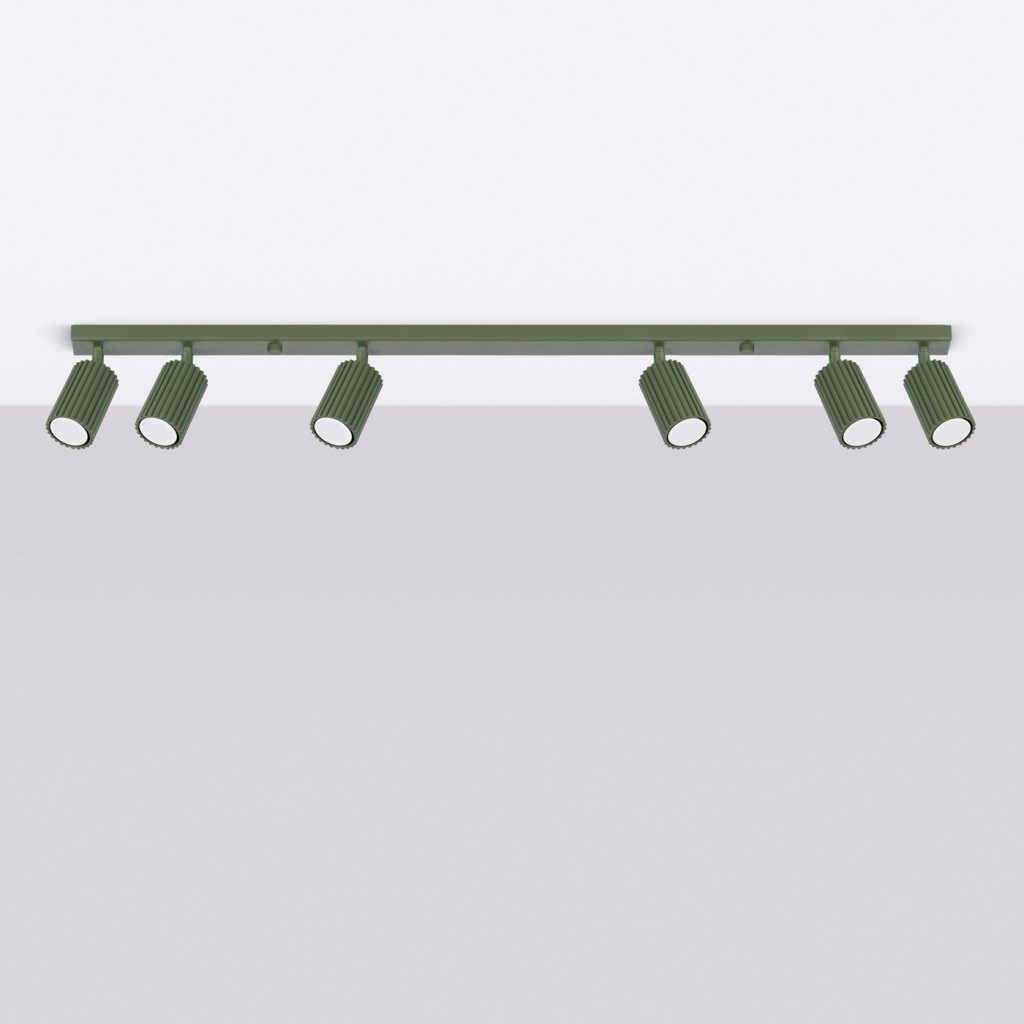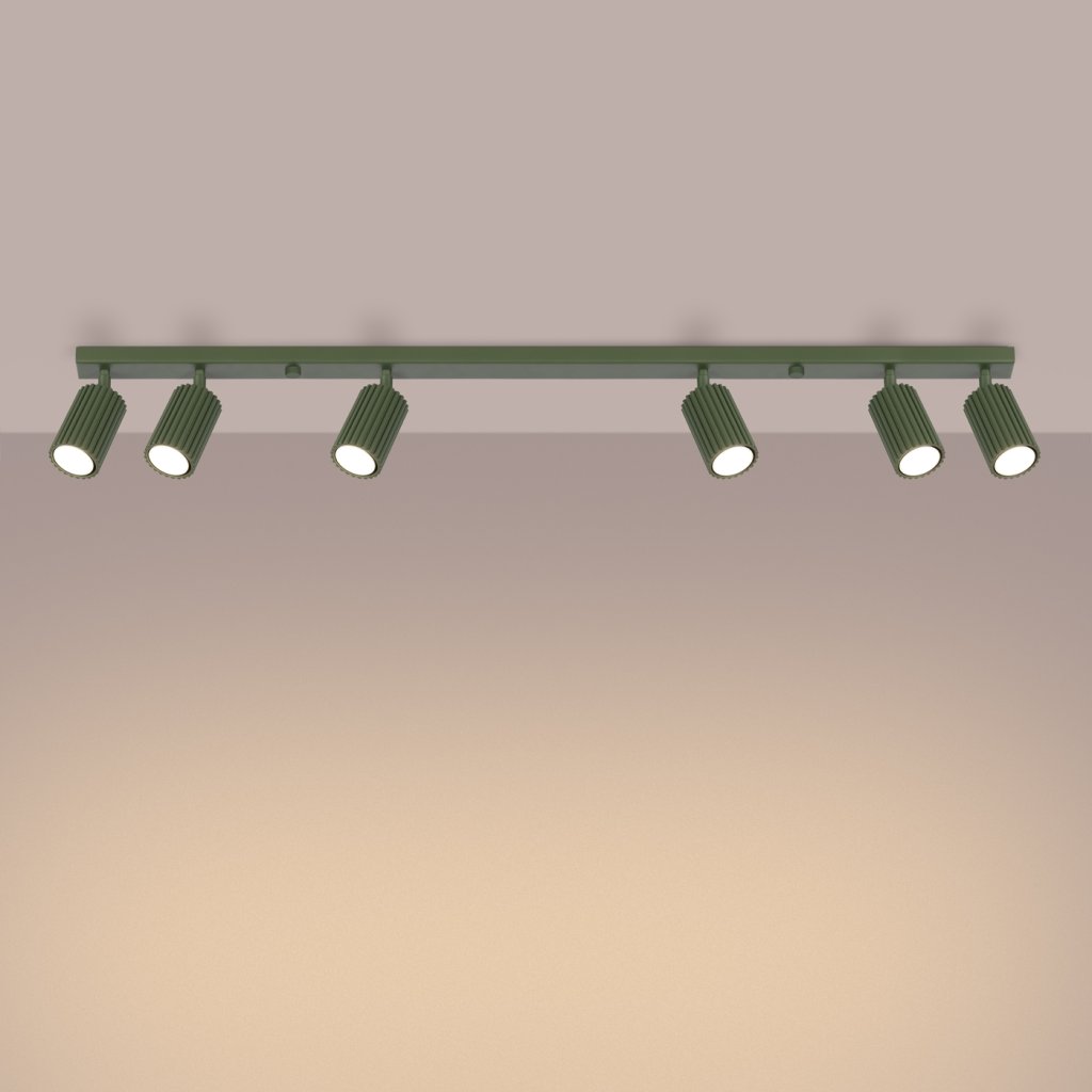 Bodové svítidlo KARBON s šesti olivově zelenými kovovými stínidly je moderní a funkční řešení osvětlení, které v sobě spojuje elegantní design, praktičnost a jedinečný vizuální charakter. Žebrovaný povrch stínidel dodává svítidlu originální vzhled a jemně industriální nádech, díky čemuž se skvěle hodí do moderních, loftových a minimalistických interiérů.