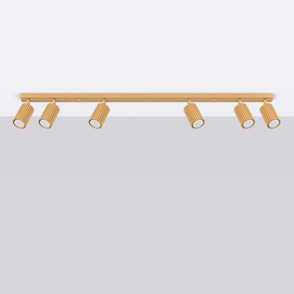 Bodové svítidlo KARBON s šesti zlatými kovovými stínidly a možností polohování je elegantním a funkčním řešením osvětlení pro moderní interiéry. Díky jedinečnému designu s jemně žebrovaným povrchem se svítidlo stává nejen zdrojem světla, ale také výrazným estetickým prvkem místnosti.