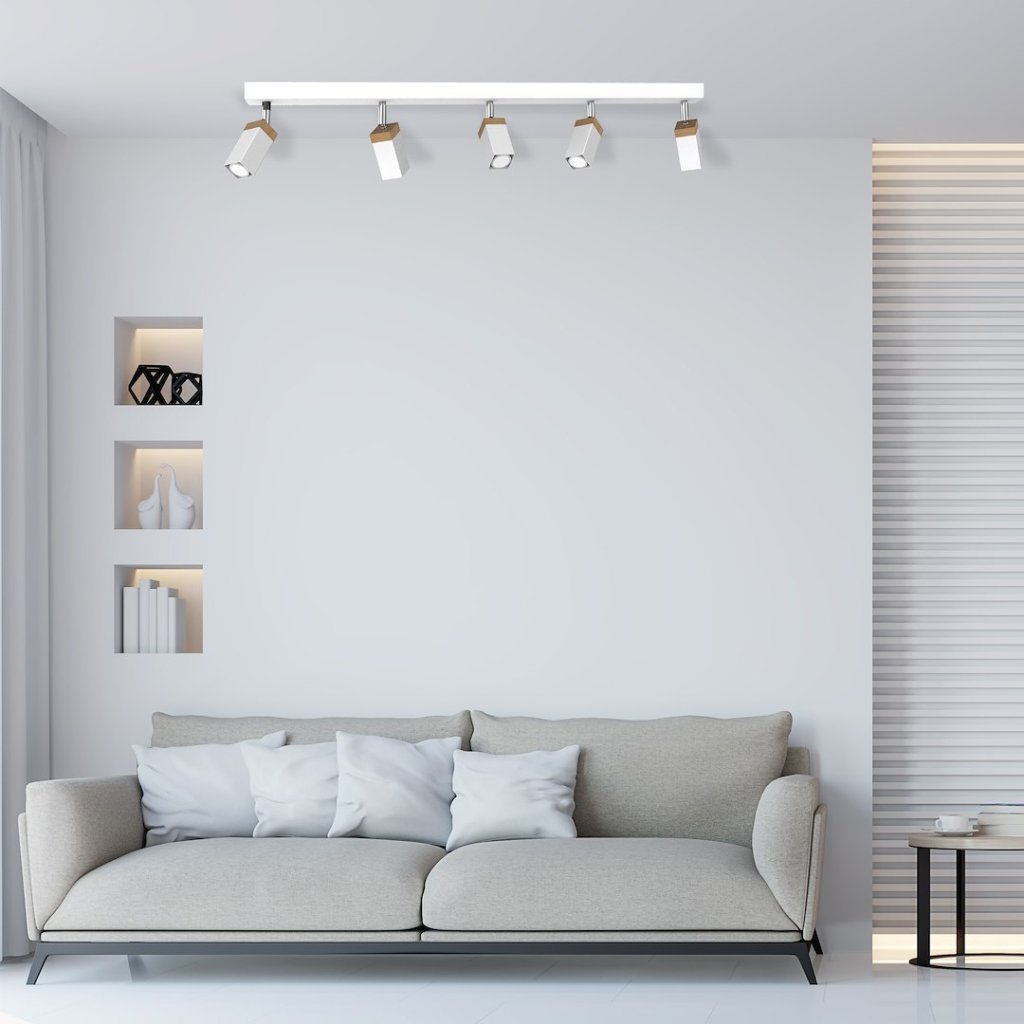 Bodové svítidlo Solo Sawn, 5x dřevěné/bílé kovové stínítko, w
