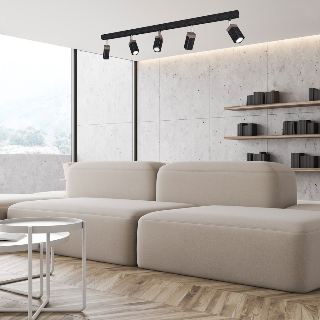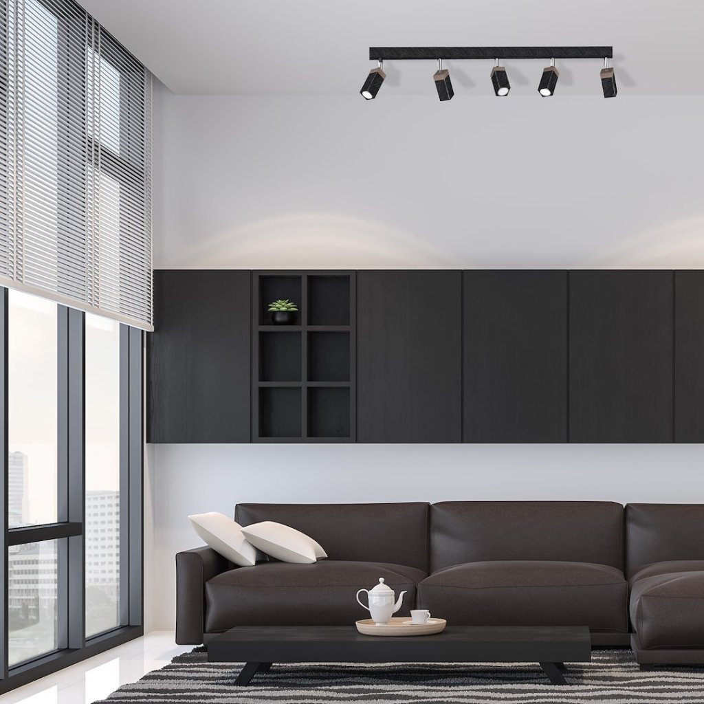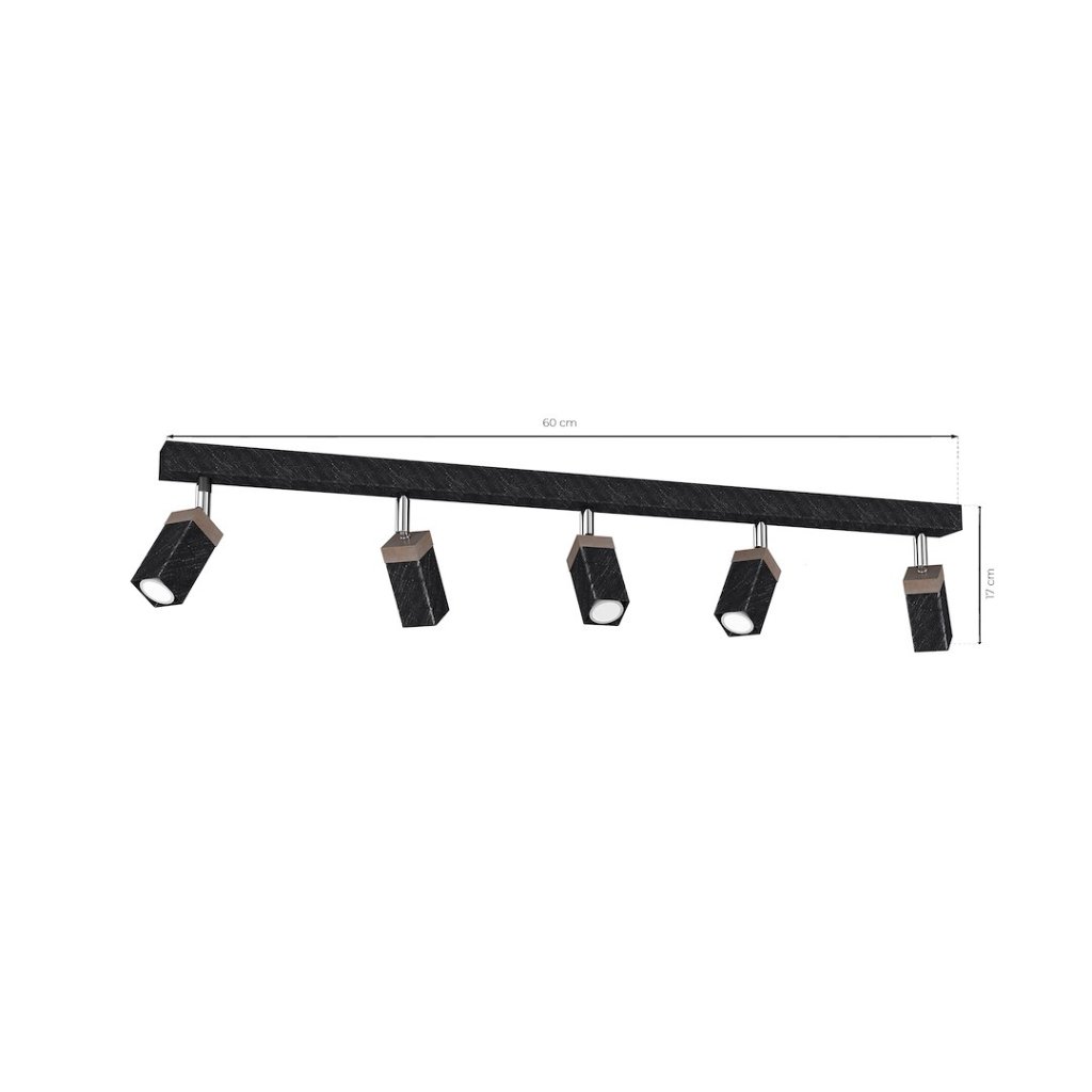 Bodové svítidlo Solo Sawn, 5x dřevěné/černé kovové stínítko, b