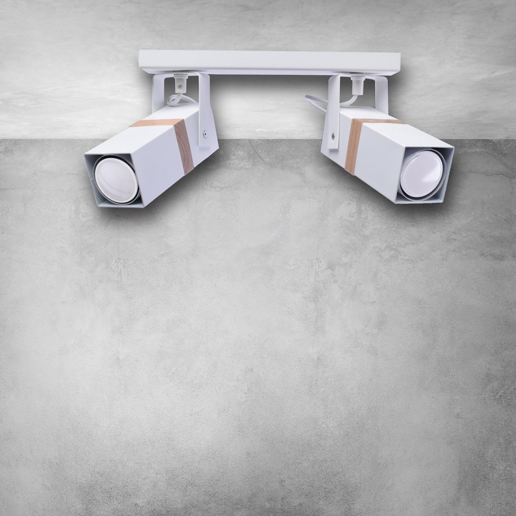 Bodové svítidlo Vidar, 2x dřevěné/bílé kovové stínítko, w
