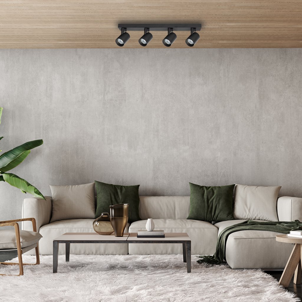 Čtyři světelné body s paticemi GU10 lze individuálně nastavovat, což umožňuje přizpůsobit osvětlení konkrétním potřebám. Svítilna je vhodná pro použití v obývacím pokoji, kuchyni, pracovně nebo v otevřených multifunkčních prostorách. Krytí IP20 zajišťuje jeho použití výhradně v interiéru.