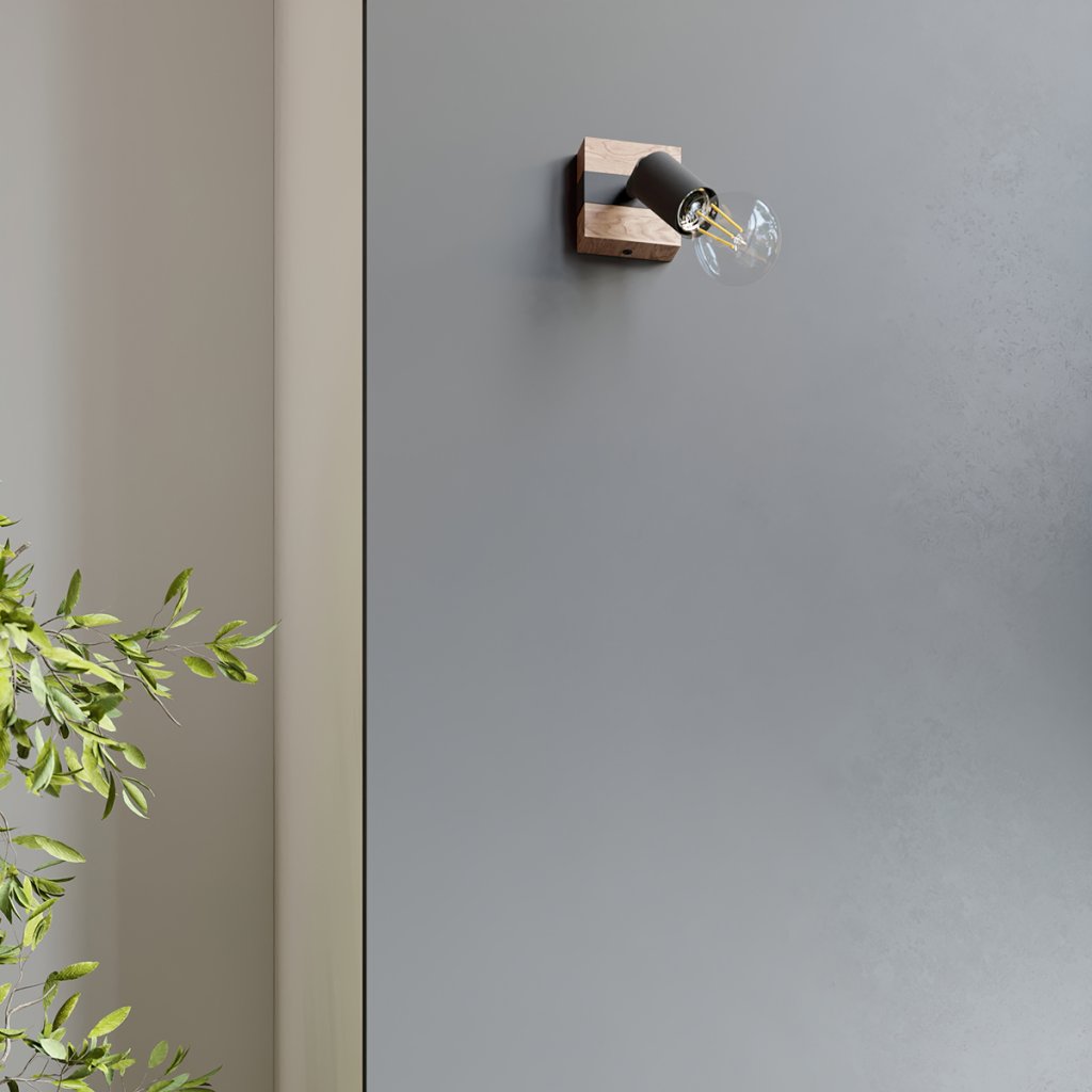 Bodové svítidlo Zuca 3, černé tělo svítidla, (možnost polohování), dřevo