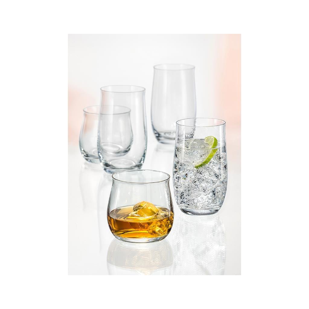 Model z kolekce Angela o výšce 8,3 cm a průměru 9,1 cm působí jemně a sofistikovaně. Nízký tvar a elegantní forma dodávají servírování vody, nealkoholických nápojů či míchaných drinků výjimečný charakter. Poháry se hodí i pro podávání drobných dezertů, čímž obohatí každé stolování.