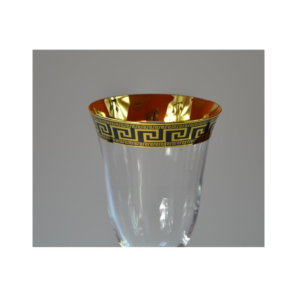Sada šesti sklenic na víno z kolekce ANGELA Verso Gold nabízí spojení nadčasové elegance a kvality. Vyrobeno z křišťálového skla se zlatým zdobením vynikají svou čistotou, trvanlivostí a estetickým provedením. Při přípitcích sklenice vydávají jemný, zvonivý zvuk typický pro pravý křišťál.