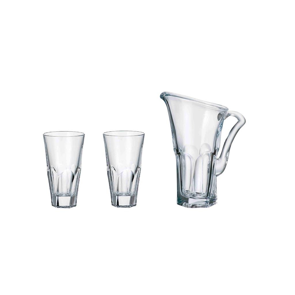 Sada obsahuje džbán o objemu 1,7 l a výšce 29 cm a dvě sklenice o objemu 480 ml, výšce 17,5 cm a průměru 8,5 cm. Dohromady tvoří dokonale sladěnou sadu, která je vhodná nejen pro každodenní použití, ale také pro slavnostní příležitosti nebo jako originální dárek.