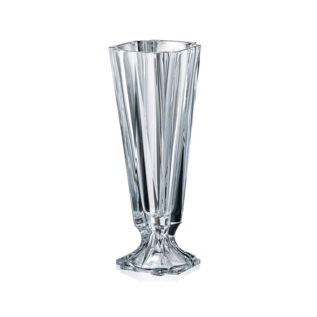 Křišťálová váza na nožce je vyrobena z křišťálového skla nejvyšší kvality. Sklo je dokonale čiré a váza se na stole krásně prezentuje. Křišťálová váza je ideální na řezané květiny, jako výrazná dekorace nebo součást květinového aranžmá; hodila by se také jako dárek.Křišťálová váza na nožce z řady METROPOLITAN