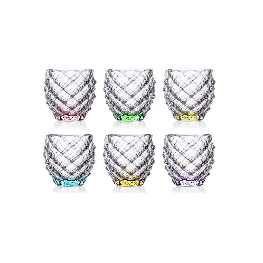 Součástí šestidílné sady sklenic jsou modely v šesti barevných provedeních – světle tyrkysová , fialová , růžová , citrónová , limetková a jantarová . Díky pestrým barvám a sofistikovanému designu jsou tyto skleničky ideální pro podávání whisky , vody, džusu i míchaných nápojů, přičemž se stanou i stylovým doplňkem interiéru .