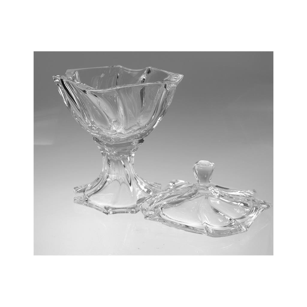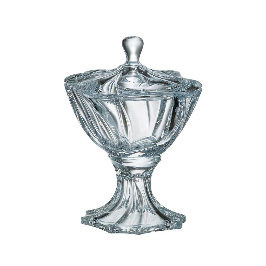 Křišťálová cukrářská mísa byla vyrobena z křišťálového skla nejvyšší kvality. Sklo je dokonale čiré a miska se na stole krásně vyjímá. Křišťálová miska je ideální na čokoládu, cukrovinky, sušenky; menší velikost lze použít také jako cukřenku.Křišťálová miska na sladkosti na nožce z řady NEPTUN