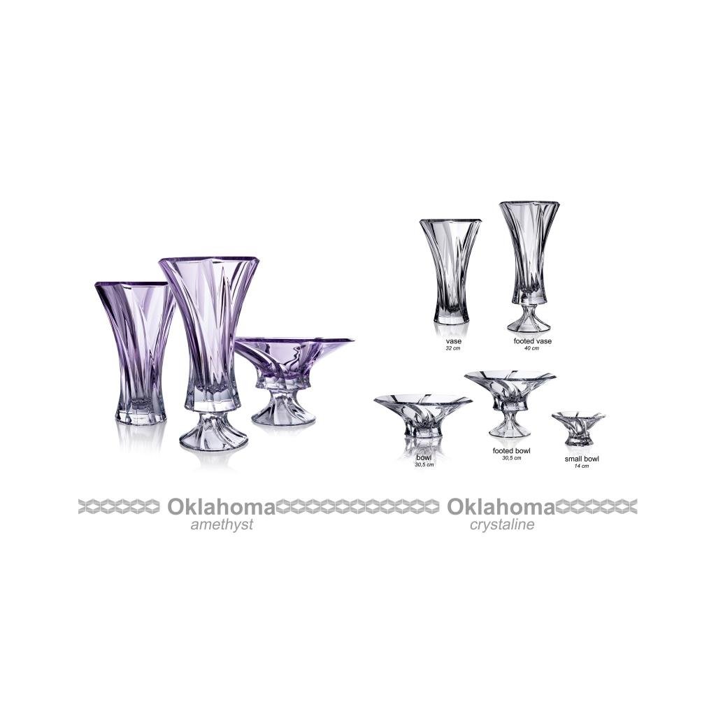 Křišťálová miska na noze z kolekce Oklahoma byla vyrobena z prvotřídního křišťálového skla , které vyniká výjimečnou čirostí a brilantním leskem. Díky průměru 30,5 cm je ideální volbou pro servírování ovoce nebo jako výrazná dekorace do středu stolu. Elegantní zpracování a klasický design z ní dělají působivý doplněk pro každodenní i slavnostní stolování.