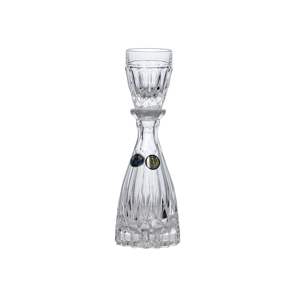Sada na likéry BOHEMIA ONE MAN zaujme originálním designem a řemeslnou precizností. Tuto stylovou křišťálovou karafu o objemu 100 ml doplňuje praktický uzávěr ve tvaru pohárku, který zároveň slouží jako degustační sklenička o objemu 45 ml. Oba kusy jsou vyrobeny z kvalitního křišťálového skla s 24 % PbO a zdobí je jemný vertikální reliéf, který při lomu světla vytváří jedinečný vizuální efekt. Díky kompaktním rozměrům a elegantnímu designu je tato křišťálová sada na likér nebo domácí pálenku ideální pro osobní použití i jako originální dárek pro milovníky kvalitních lihovin. Dodává se v tmavě modré dárkové krabičce se značkou Crystal Bohemia, která podtrhuje jedinečnost a původ výrobku.Doplňkové parametry