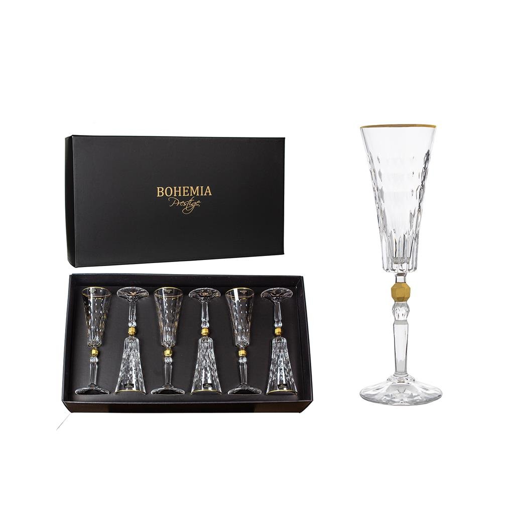 BOHEMIA PRESTIGE CONTE GOLD SKLENICE NA ŠAMPAŇSKÉ 170ML SADA 6 KS