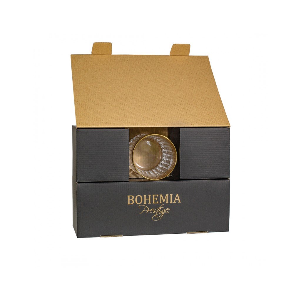 Bohemia Prestige DORATO whisky set 6 je určen pro skutečné fajnšmekry. Tato unikátní sada je balena v exkluzivním černém balení se zlatým logem Bohemia Prestige a je ideální jako dárek pro každou příležitost.Samotné sklenice jsou vyrobeny z křišťálového skla nejvyšší kvality. Sklo je průhledné, odolné a má svůj originální design se zlatým zdobením. Ať už na stole nebo na baru působí luxusně a svojí výjimečností neunikne očím žádné návštěvy.