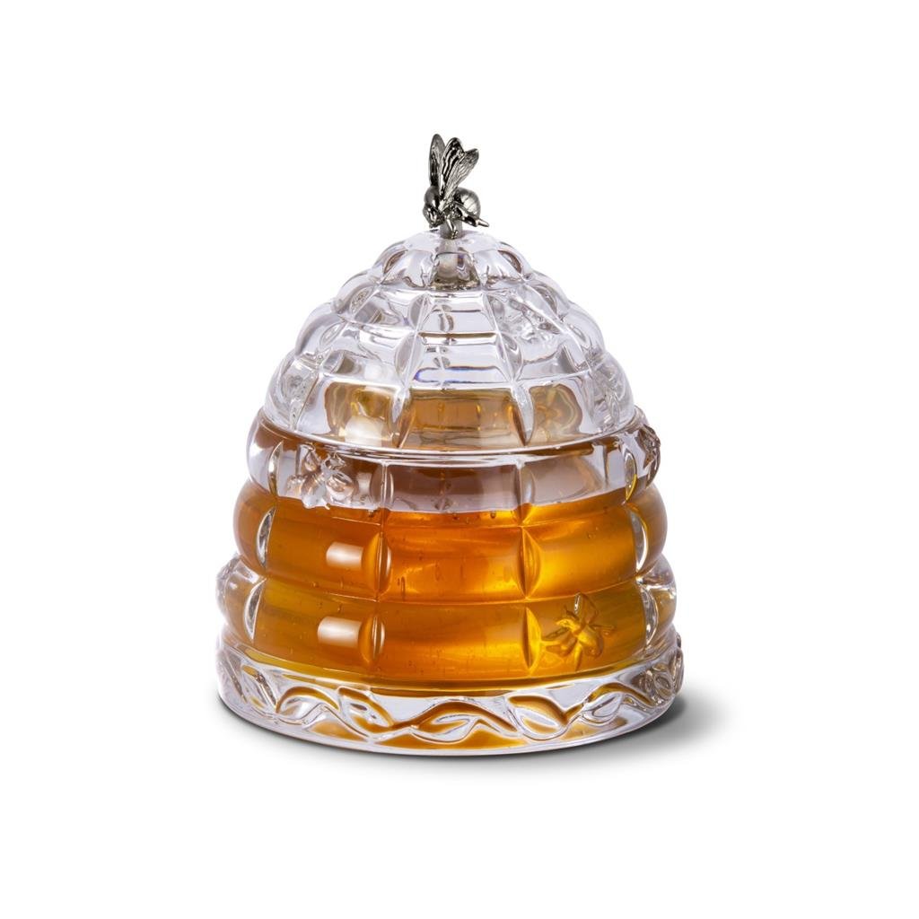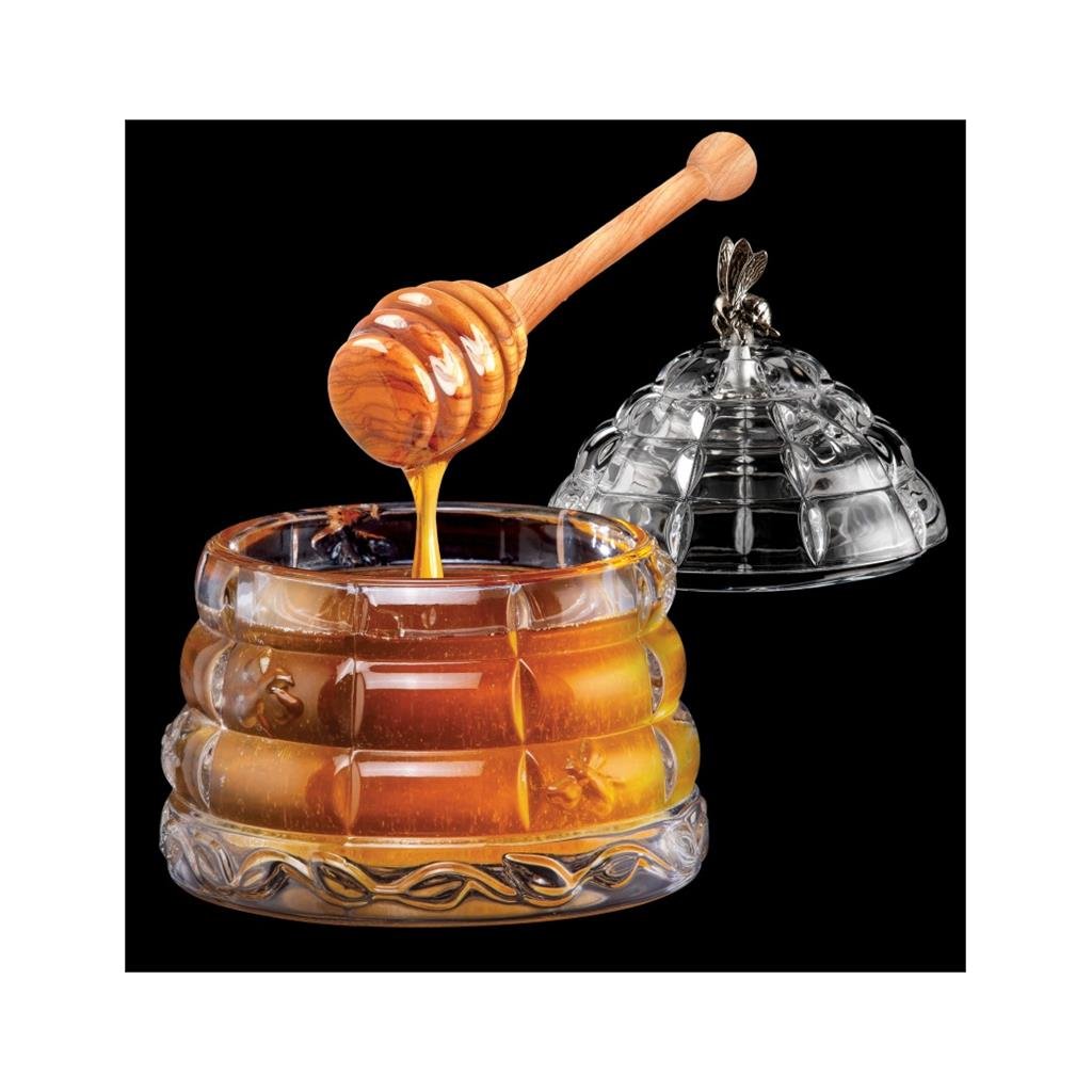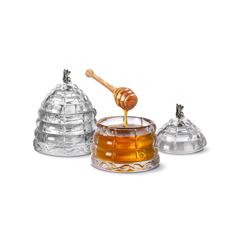 Křišťálová nádoba na med Gold o objemu přibližně 300 ml je rafinovaným doplňkem, který spojuje luxusní vzhled s praktickým využitím. Vyrobená z křišťálového skla o obsahu 24% PbO vyniká výjimečnou čirostí a zářivým leskem. Na víčku se nachází dekorativní zlatá včelka , která produktu dodává osobitý charakter. Součástí balení je dřevěná naběračka na med , díky které je nádoba nejen estetická, ale také funkční. S výškou 11,8 cm se stane stylovým doplňkem prostřeného stolu a v elegantním černém balení poslouží jako reprezentativní dárek pro milovníky detailů .Doplňkové parametry