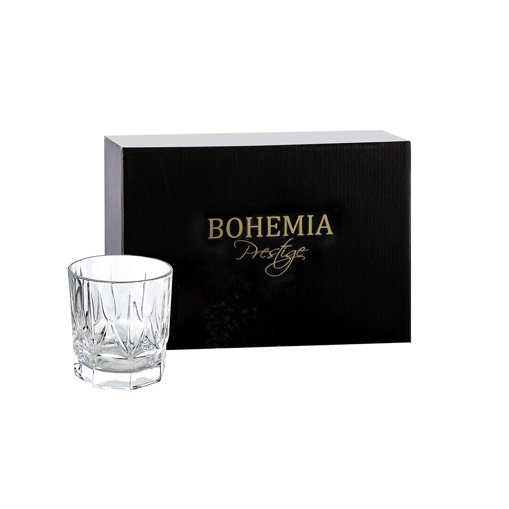 Bohemia Prestige JUMBO whisky set 6 ks je určen pro skutečné fajnšmekry. Tato unikátní sada je balena v exkluzivním černém balení se zlatým logem Bohemia Prestige a je ideální jako dárek pro každou příležitost.Samotné sklenice jsou vyrobeny z křišťálového skla nejvyšší kvality. Sklo je průhledné, odolné a má svůj originální design.