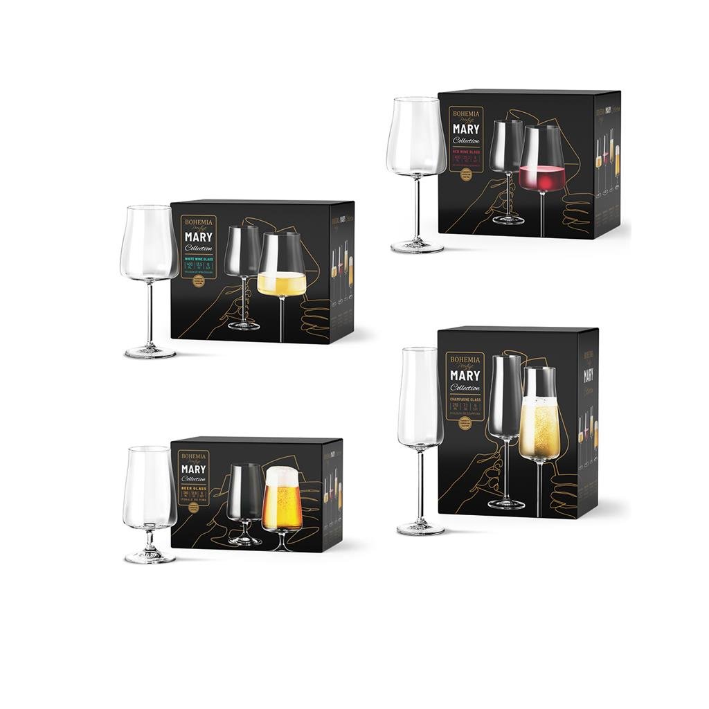 Exkluzivní kolekce sklenic na červené víno Bohemia Prestige Mary se pyšní designem s jemnými křivkami v kombinaci s moderním vzhledem. Vínové sklenice jsou vyrobeny z křišťálového skla , jsou dokonale lehké a perfektně padnou do ruky. Jejich výjimečný design jistě ocení každá návštěva, která k vám zavítá.Kolekce Mary nabízí sklenice na pivo, bílé víno, červené víno a také šampaňské , aby bylo stolování vždy perfektní a abyste nemuseli dělat kompromisy.