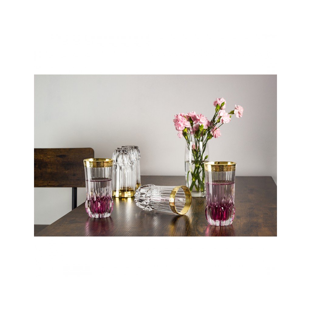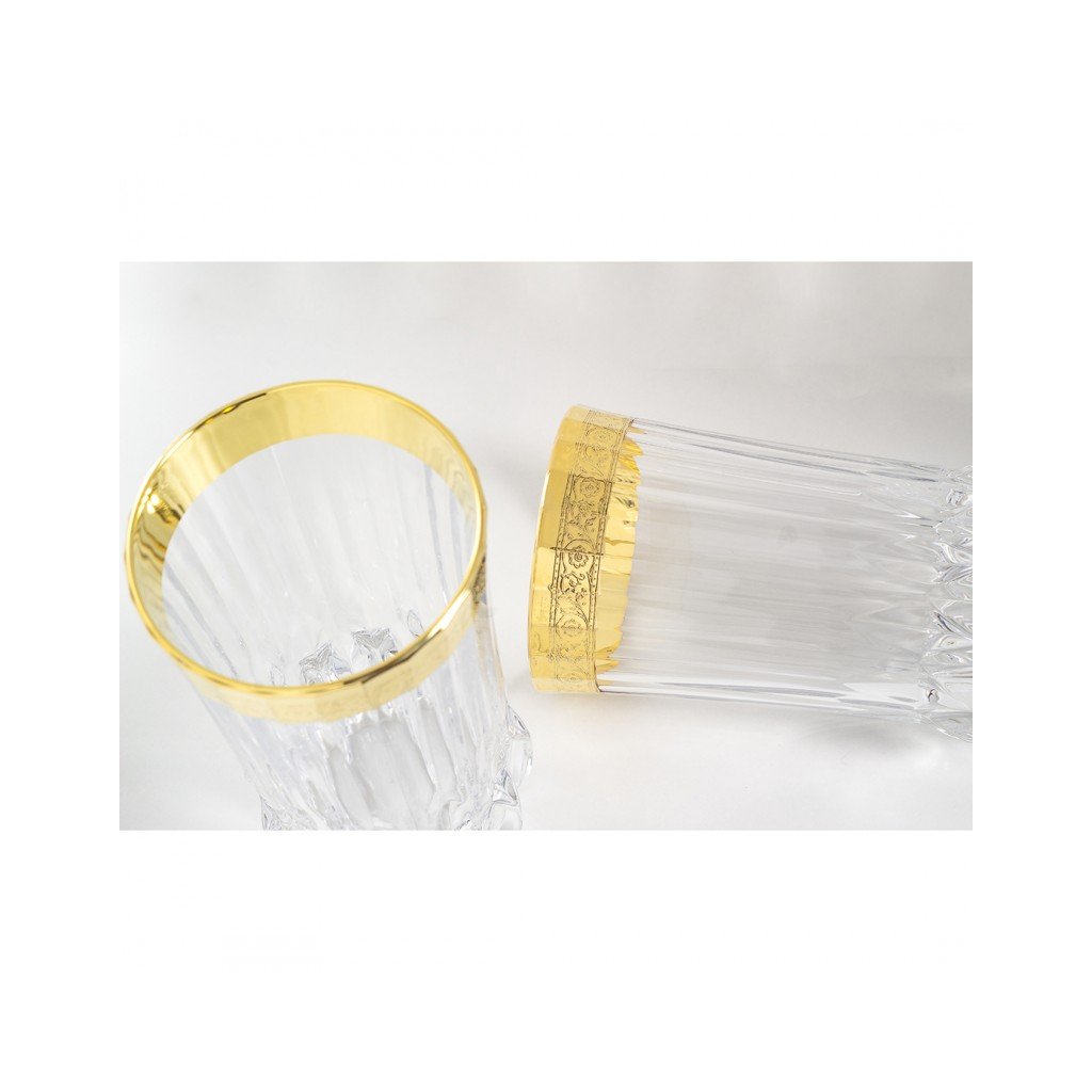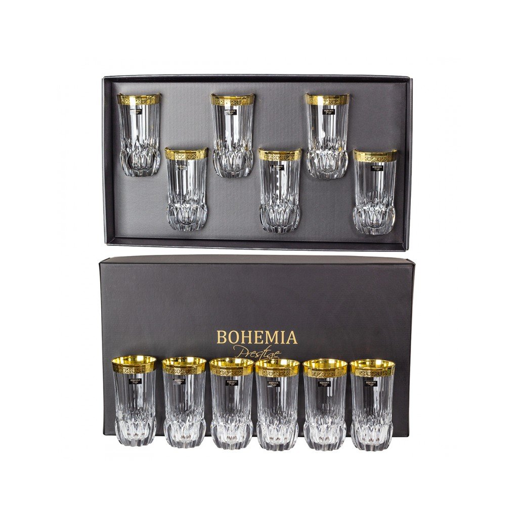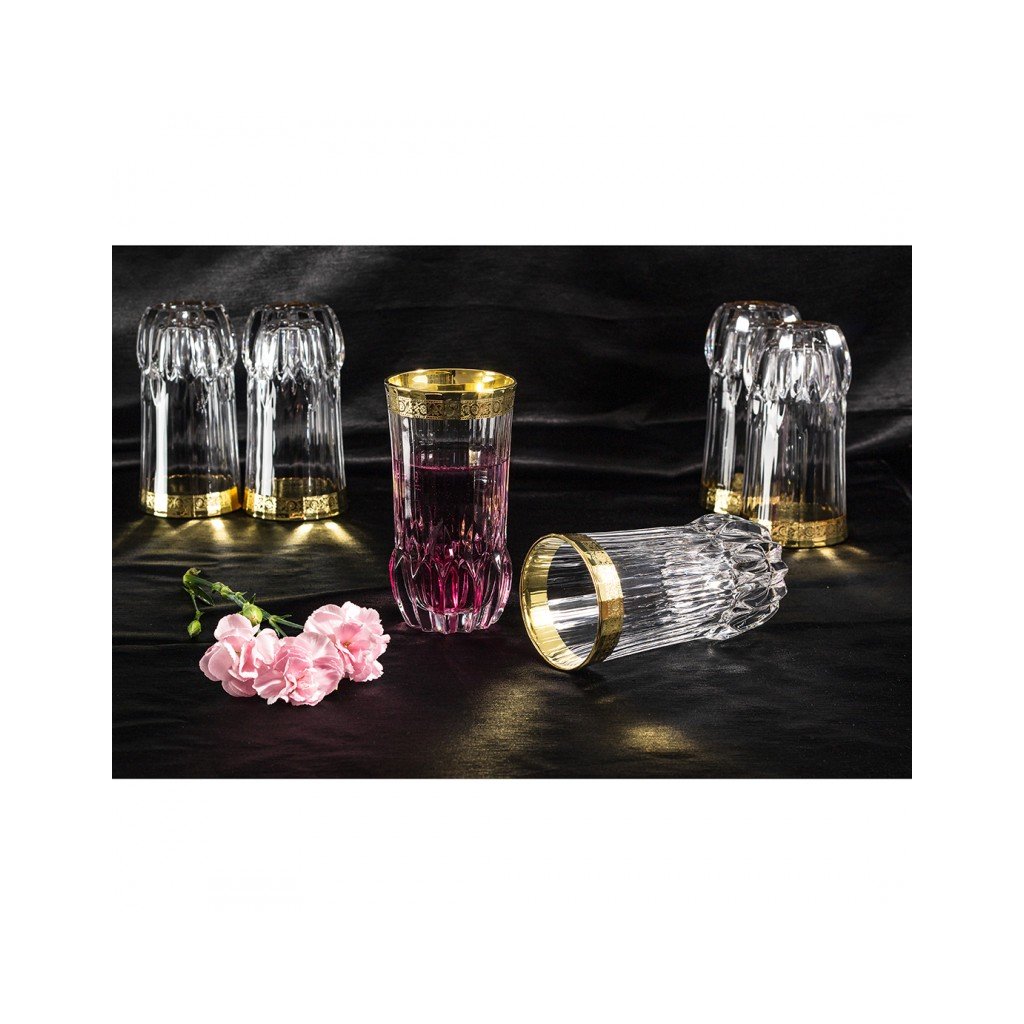 Sada sklenic na vodu BOHEMIA PRESTIGE MIRADOR o objemu 400 ml představuje harmonické spojení luxusu, funkčnosti a moderního stylu . Vyrobeno z čistého křišťálového skla , které je nejen mimořádně trvanlivé, ale zároveň ekologické a 100% recyklovatelné , sklenice z kolekce MIRADOR přinášejí do každodenního stolování prvek výjimečnosti. Elegantní zlaté zdobení dodává sklenicí noblesu a činí z nich ideální volbu pro slavnostní příležitosti i stylové servírování vody, džusů nebo míchaných nápojů . Díky svému tvaru a výšce 15 cm výborně sedí v ruce a působí moderně i klasicky zároveň. Šestidílná sada sklenic je zabalena v luxusním černém balení se zlatým logem Bohemia Prestige , což z ní činí perfektní dárek pro milovníky decentní elegance. Vzhledem ke zlatému dekoru se nedoporučuje mýt v myčce nádobí.Doplňkové parametry