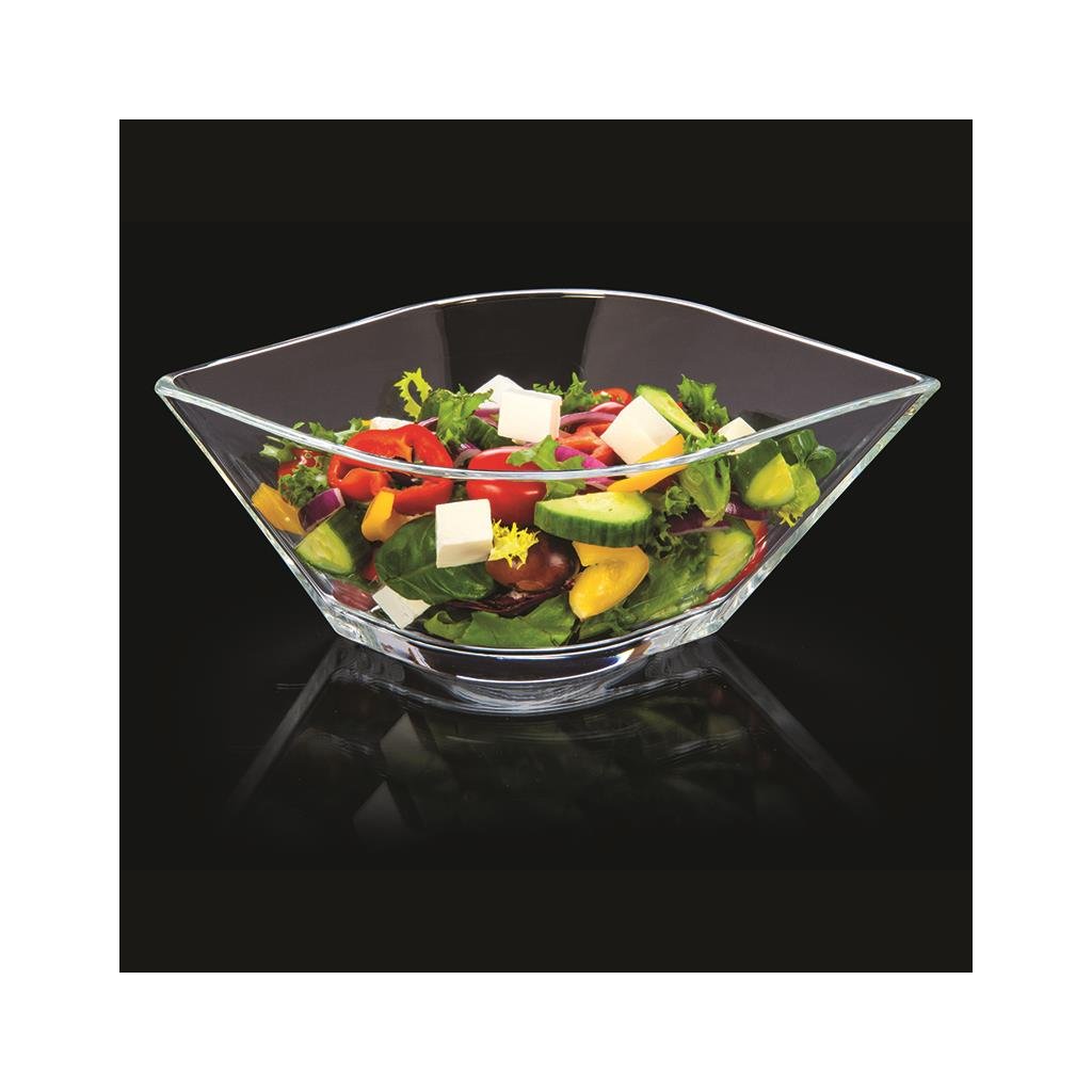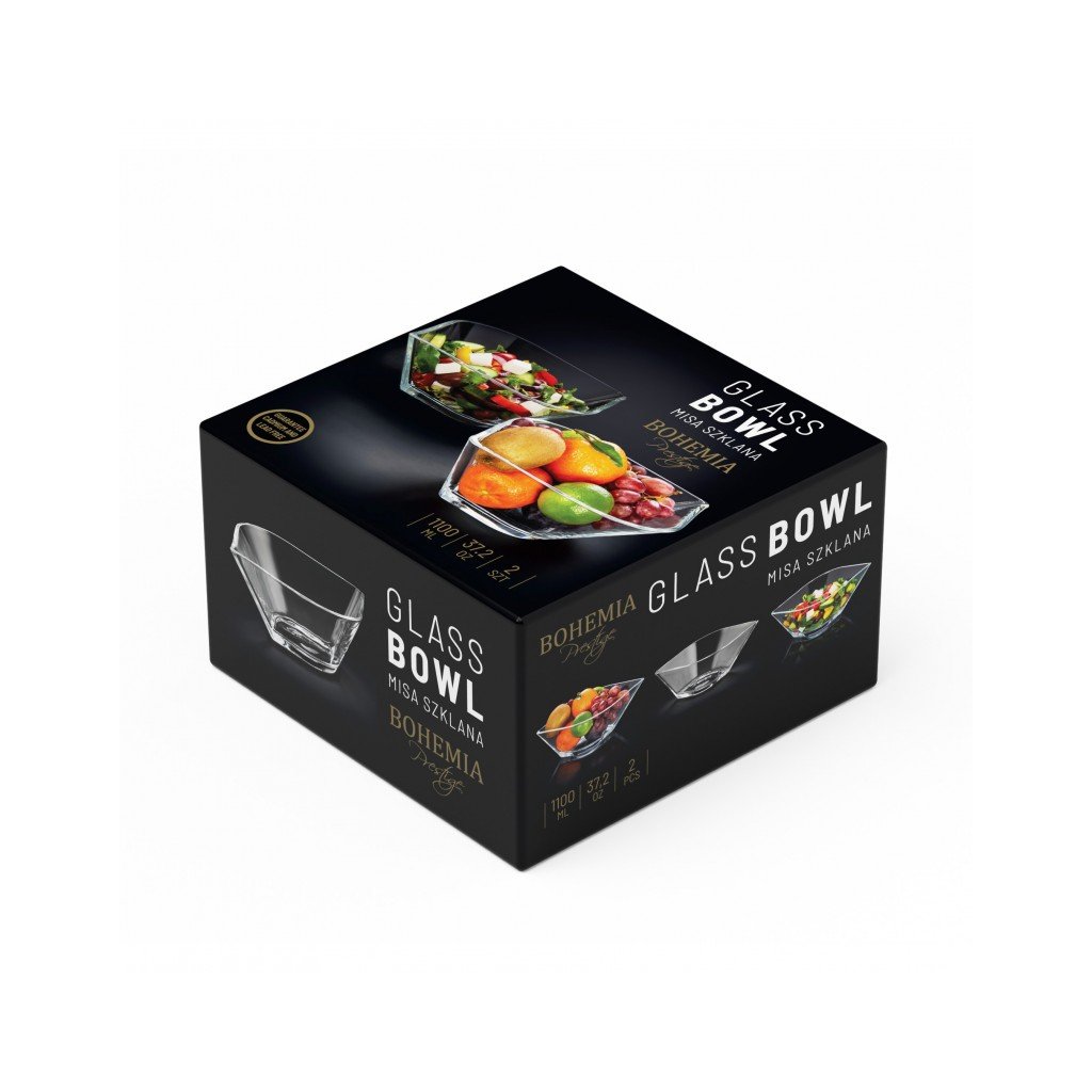 Sada dvou skleněných mís Bohemia Prestige o objemu 1100 ml je praktickým a elegantním doplňkem do každé kuchyně i jídelny. Tyto univerzální mísy jsou ideální pro podávání salátů, čerstvých zeleninových příloh, dezertů či jiných studených jídel a pochutin. Díky výraznému tvaru a čistému sklu působí na stole esteticky a reprezentativně – uplatní se stejně dobře při každodenním stolování i při podávání jídel v restauracích, hotelích či bufetových zónách. Každá mísa má výšku 8,5 cm a průměr 24,5 × 18,5 cm. Vysoce kvalitní sklo zaručuje dlouhou životnost, příjemný vzhled a snadnou údržbu. Balení obsahuje 2 kusy.Doplňkové parametry