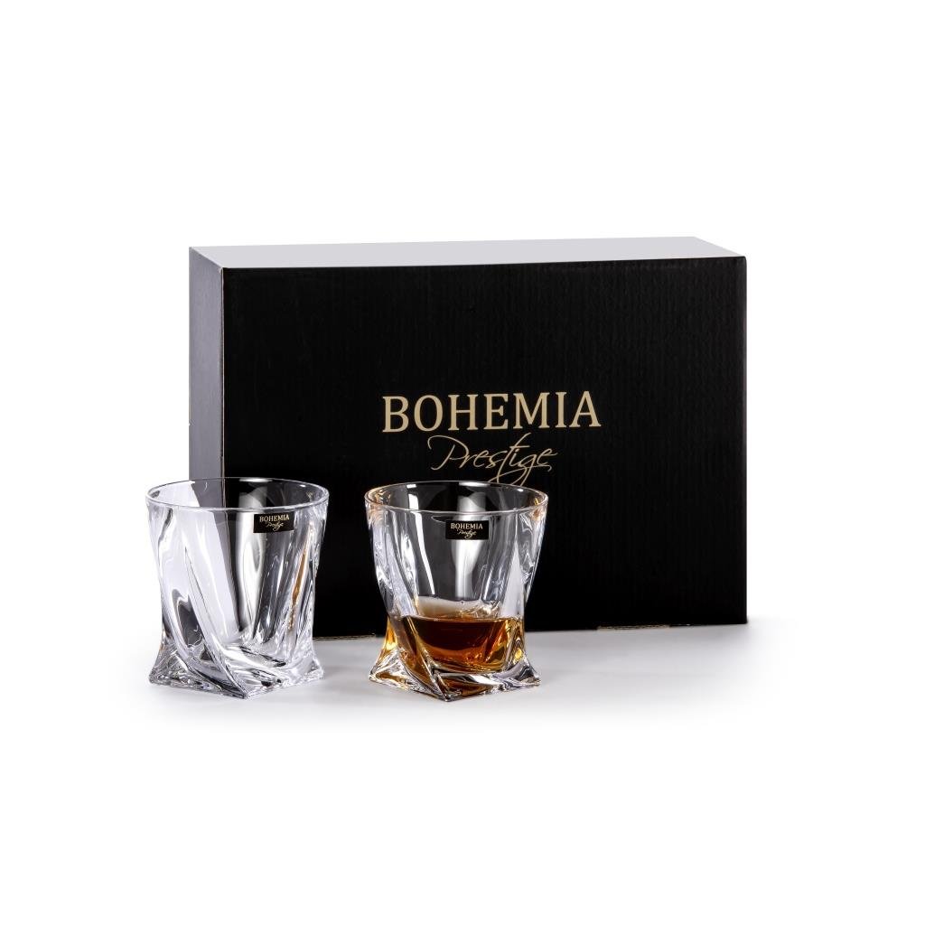 Bohemia Prestige QUADRO PREMIUM whisky set 6 je určen pro skutečné fajnšmekry. Tato unikátní sada je balena v exkluzivním černém balení se zlatým logem Bohemia Prestige a je ideální jako dárek pro každou příležitost.Samotné sklenice jsou vyrobeny z křišťálového skla nejvyšší kvality. Sklo je průhledné, odolné a má svůj originální design. Ať už na stole nebo na baru působí mejestátně a svojí výjimečností neunikne očím žádné návštěvy.