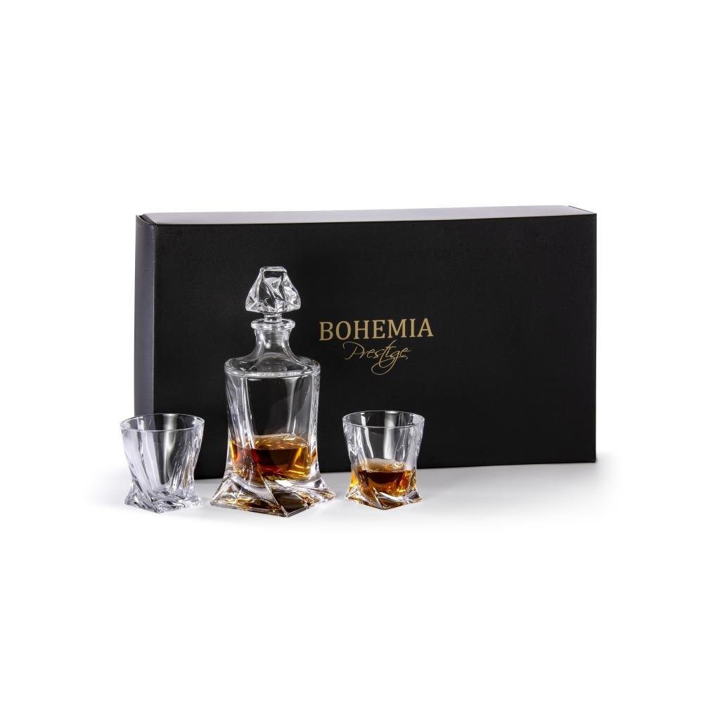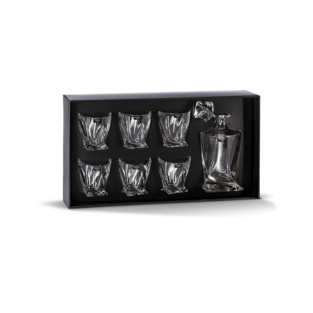 Bohemia Prestige QUADRO whisky set 6+1 je určen pro skutečné fajnšmekry. Tato unikátní sada je balena v exkluzivním černém balení se zlatým logem Bohemia Prestige a je ideální jako dárek pro každou příležitost.Samotná karafa a sklenice jsou vyrobeny z křišťálového skla nejvyšší kvality. Sklo je průhledné, odolné a má svůj originální design. Ať už na stole nebo na baru působí mejestátně a svojí výjimečností neunikne očím žádné návštěvy.