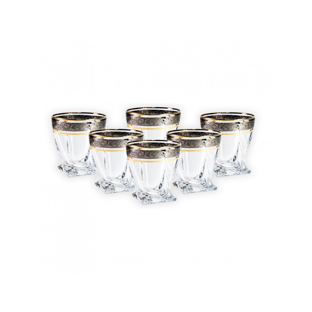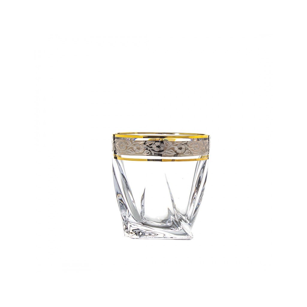 BOHEMIA QUADRO ZLATO-PLATINOVÝ SKLENICE NA WHISKY 340ML SADA 6 KS