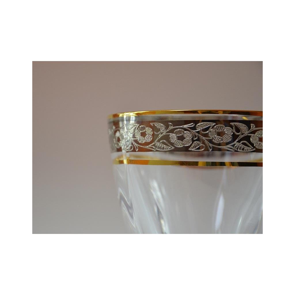 Křišťálové sklenice na whisky Quadro ve zlatavě platinovém provedení jsou vyrobeny z vysoce kvalitního křišťálového skla , které se vyznačuje výjimečnou čirostí a elegantním leskem. Jejich objem 340 ml a precizně zpracovaný tvar je předurčuje ke stylovému servírování whisky, vody či jiných studených nápojů. Poháry mají dekorativní zlatavě-platinové zdobení , které zvýrazňuje jejich luxusní charakter a činí z nich atraktivní doplněk každého stolování. Průměr sklenice je 9,5 cm a výška 10 cm . Výrobky nejsou vhodné do myčky nádobí. Balení obsahuje 6 kusů sklenic.