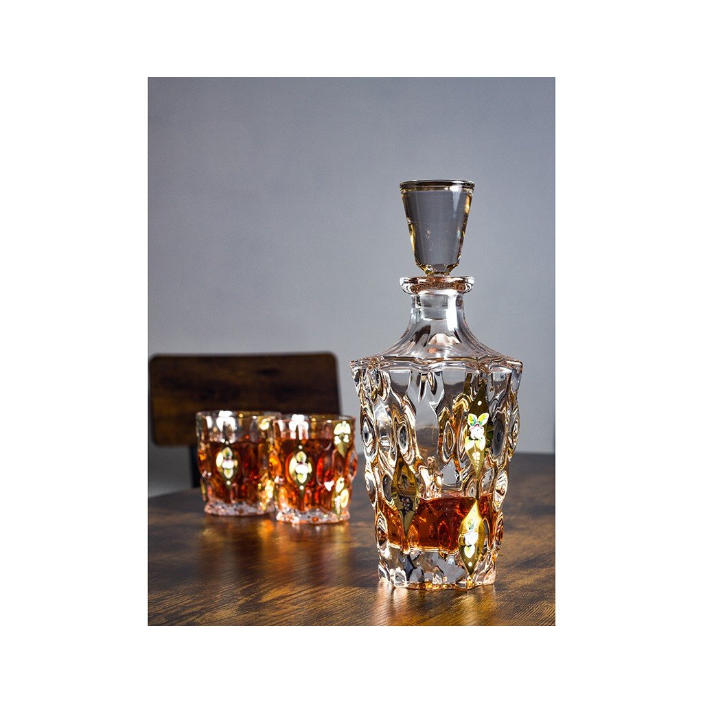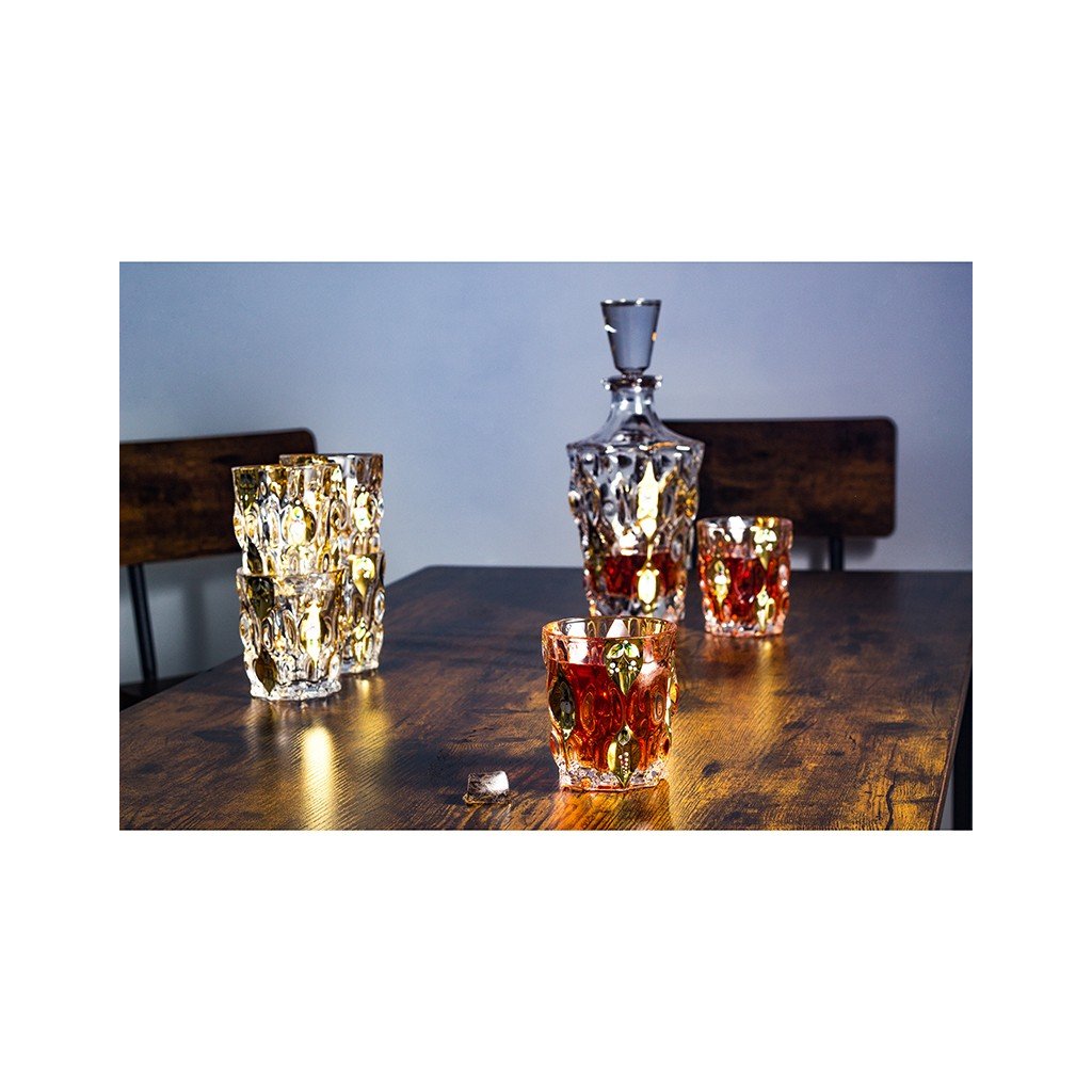 Whisky sada Samba Harmony 1+6 vnáší do prostoru půvab, rytmus a nádech jižanského temperamentu. Její design čerpá inspiraci z tance samba – stylu plného radosti, slunce a pozitivní energie s objemem s 800 ml a šest sklenic o objemu 320 ml , přičemž každý prvek je vyroben z křišťálového skla nejvyšší kvality . vizuálně zjemňují. Křišťálová sada z kolekce Samba Harmony je ideálním dárkem pro milovníky výjimečných detailů, řemeslného zpracování a luxusních interiérových doplňků.Doplňkové parametry