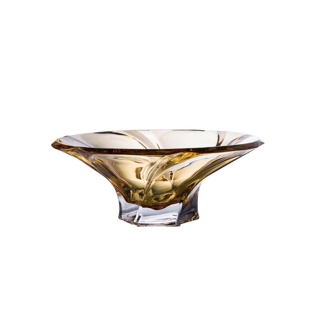 Křišťálová mísa z kolekce Mozart v jantarovém odstínu je vyrobena z křišťálového skla nejvyšší kvality , které se vyznačuje výjimečnou čirostí a jiskřivým leskem. Elegantní tvar a sytá barva dělají z této mísy působivý dekorativní prvek , vhodný jak na servírování ovoce , tak i jako středový doplněk prostřeného stolu . Průměr mísy je 30,5 cm .