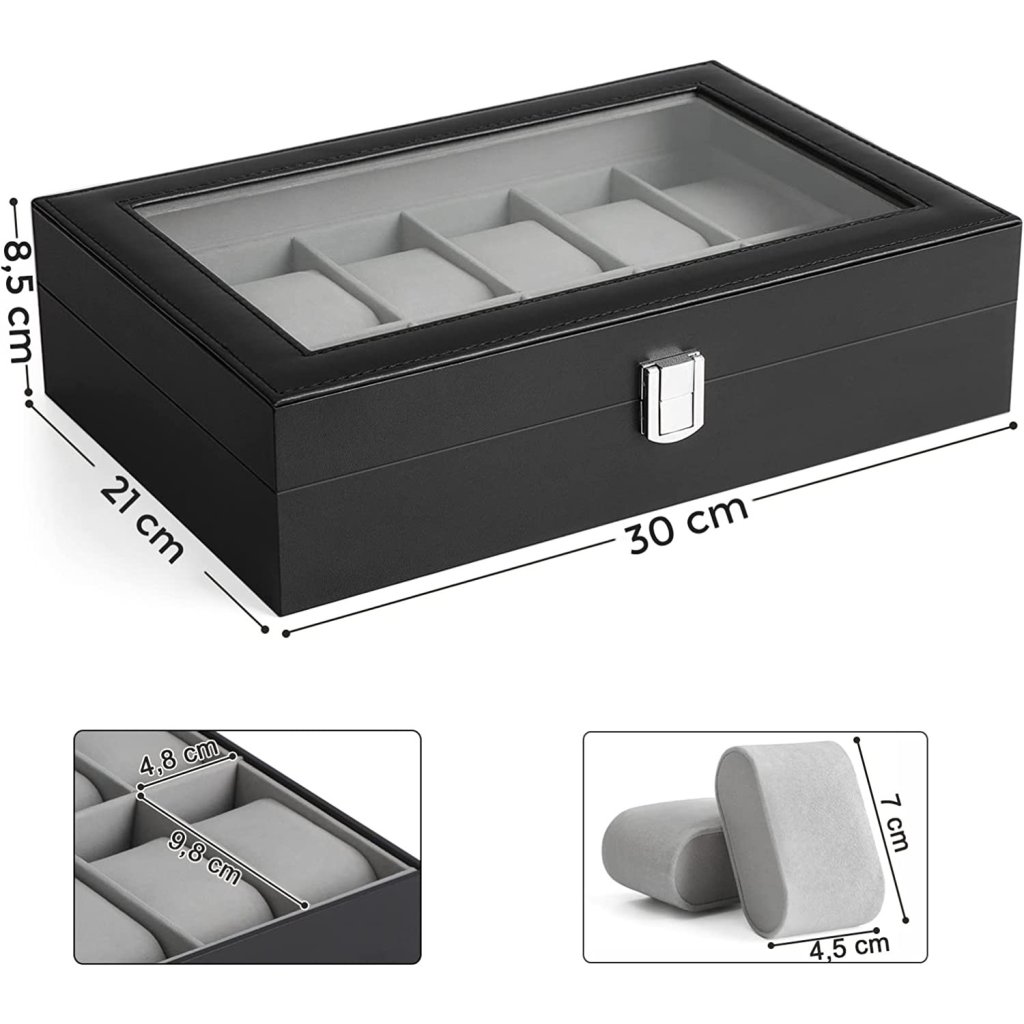 Box obsahuje až 12 samostatných přihrádek, což umožňuje uskladnění celé kolekce na jednom místě a zároveň šetří prostor. Je to ideální dárek pro každého, kdo má rád hodinky a ocení praktický i estetický způsob jejich organizace . Tento stylový box dodá interiéru moderní a upravený vzhled.