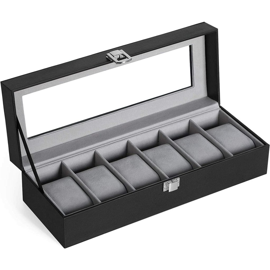 Box nabízí 6 samostatných přihrádek pro přehledné uložení hodinek a umožňuje jejich bezpečné uskladnění na jednom místě. Je to výborný tip na dárek pro každého milovníka hodinek , který ocení spojení praktičnosti, elegance a důrazu na detail.