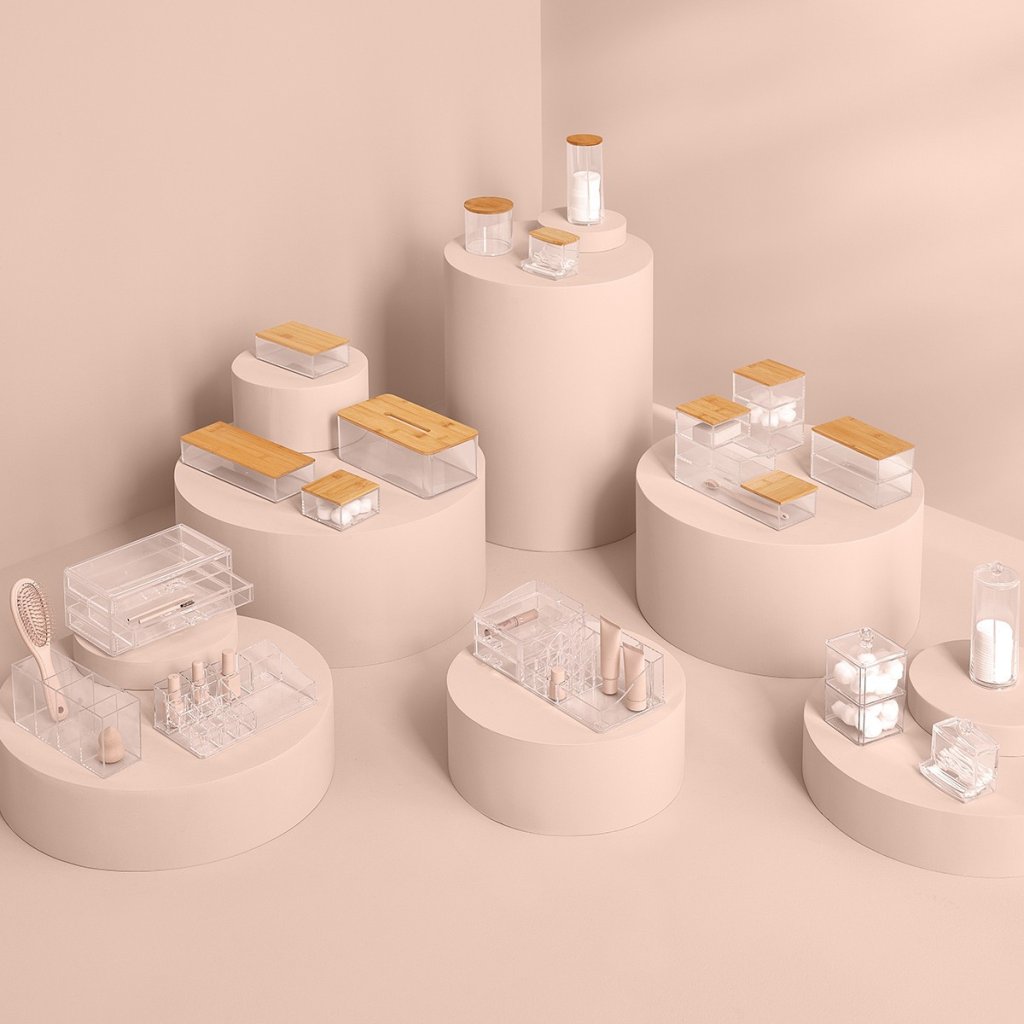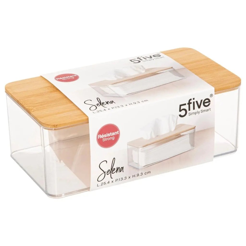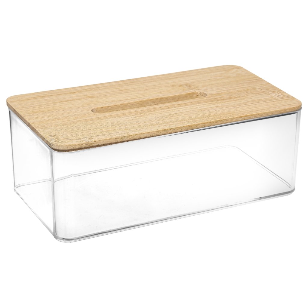 Box na kapesníky Selena, 25,3x9,3x13,3 cm, čirá/s dřevěnými prvky