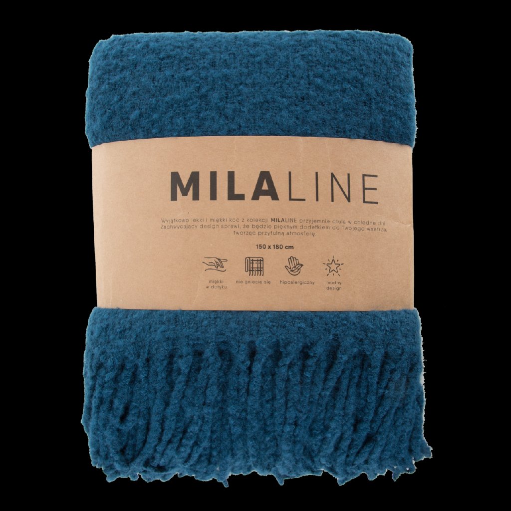Deka imitující bouclé, šířka: 150 cm, délka: 180 cm, barva: tmavě modrá, hmotnost: 200 GSM, složení: 100 % polyester.Doplňkové parametry