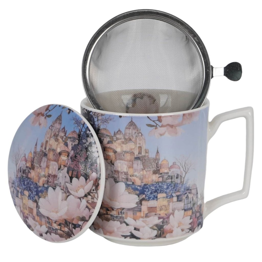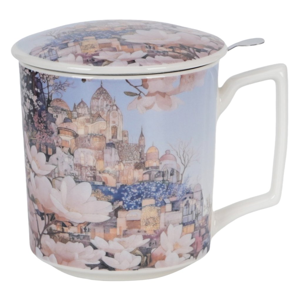 Čajová souprava City Of Magnolias o objemu 450 ml je elegantním řešením pro milovníky čaje, kteří oceňují moderní design a umělecké zpracování. Souprava sestává z porcelánového hrníčku se sítkem, přičemž je vyrobena z kvalitního porcelánu v krémově bílém odstínu se subtilním leskem, který působí jemně a nadčasově.
