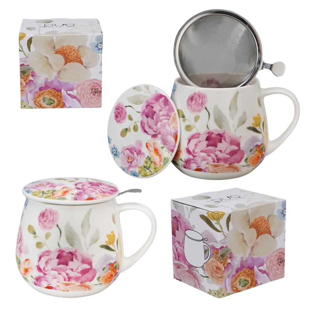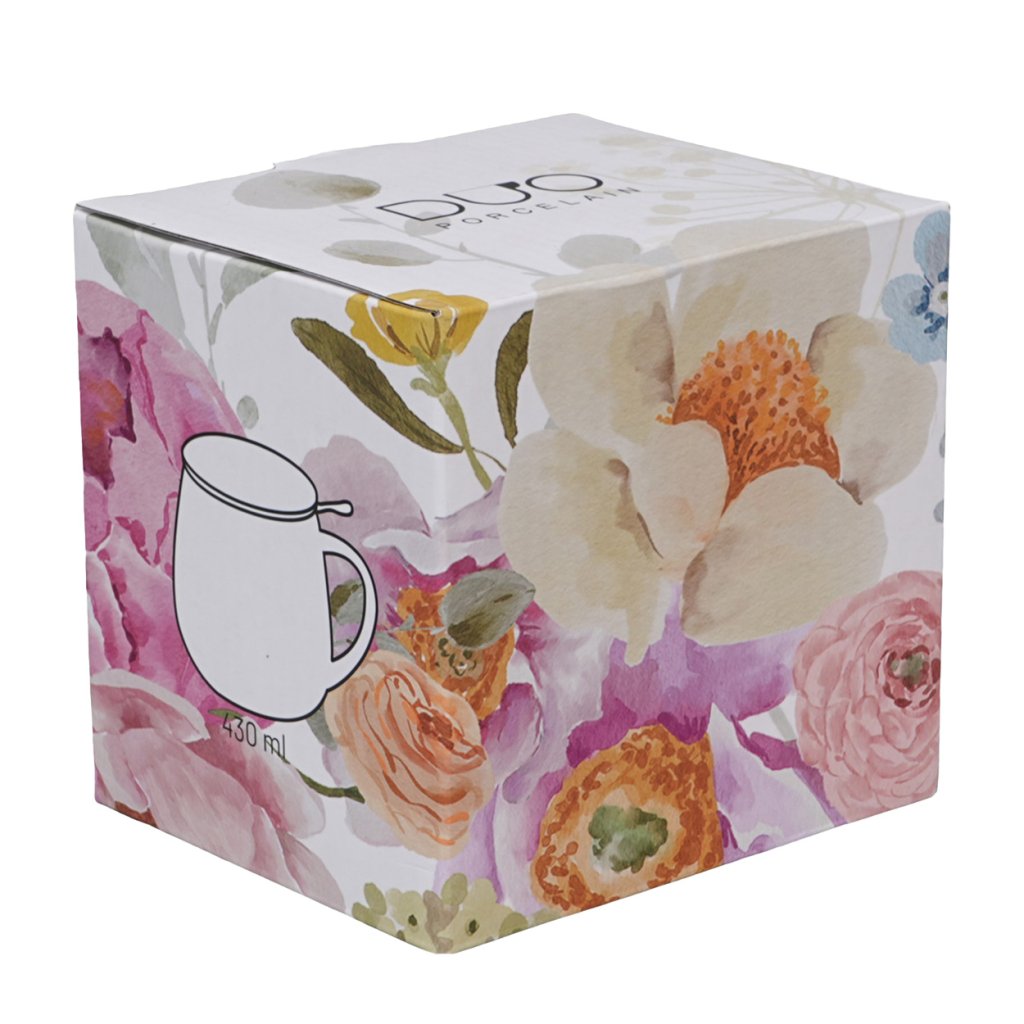 Čajová souprava June o objemu 430 ml je ideálním doplňkem pro všechny milovníky čaje, kteří ocení spojení praktičnosti a jemného designu. Vyrobená z kvalitní porcelánu , zdobená pastelovým květinovým vzorem , přinese do každodenního rituálu šálek pohody a elegance.