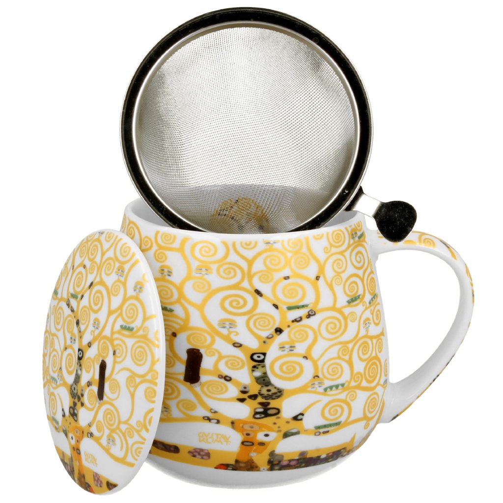 Hrnek "The Tree of Life" s infuzérem a víkem, inspirovaný dílem Gustava Klimta je nejen praktickým každodenním předmětem, ale také malým uměleckým dílem. Hrnek se vyznačuje klasickým tvarem a je vyroben z kvalitního porcelánu New Bone China. Vyznačuje se lehkostí a zároveň vysokou odolností. Elegantním balením v dárkové krabičce je hrnek připraven k darování při různých příležitostech.Buďte první, kdo napíše příspěvek k této položce.