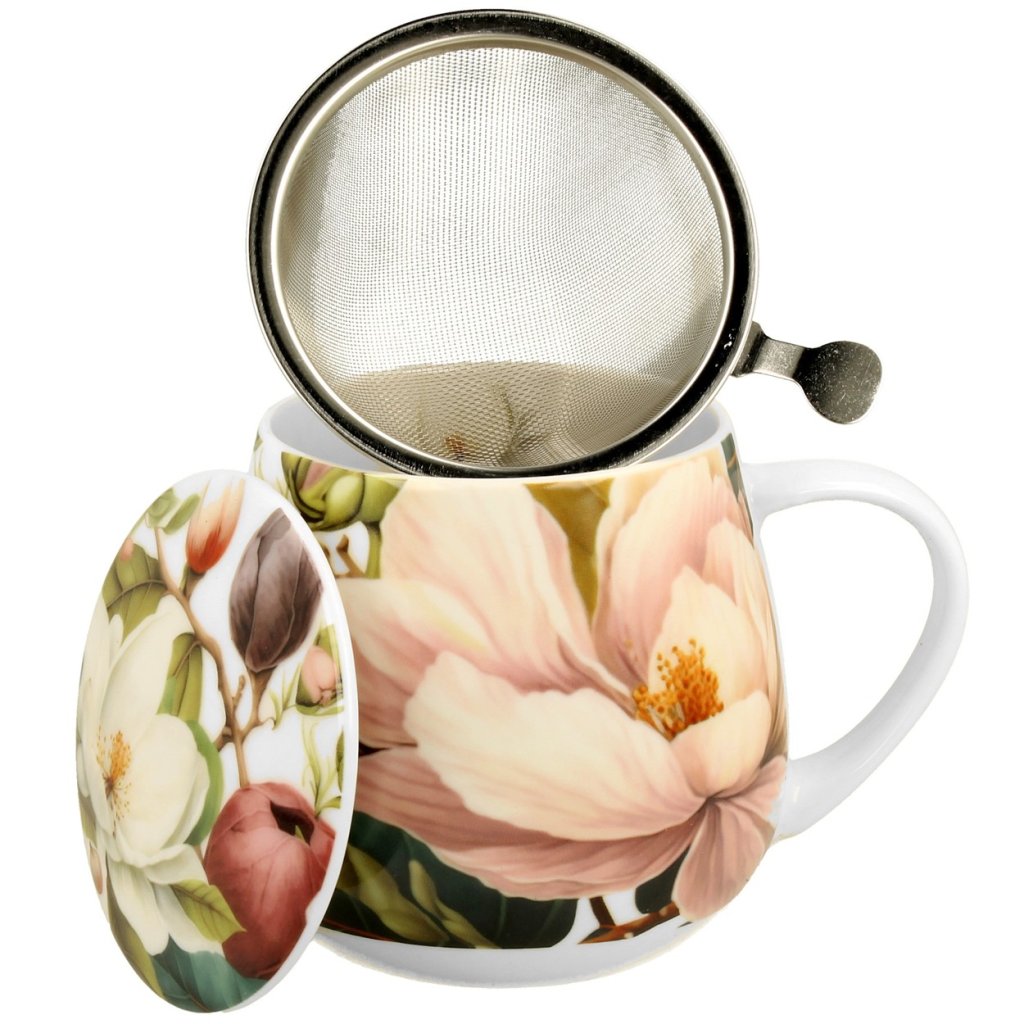 Hrnek "Magnolia" s infuzérem a víkem je kombinací elegance a funkčnosti. Hrnek se vyznačuje klasickým tvarem a je vyroben z kvalitního porcelánu New Bone China. Vyznačuje se lehkostí a zároveň vysokou odolností. Elegantním balením v dárkové krabičce je hrnek připraven k darování při různých příležitostech.Doplňkové parametry