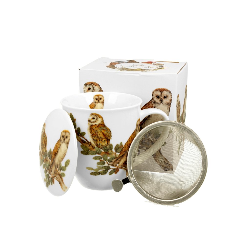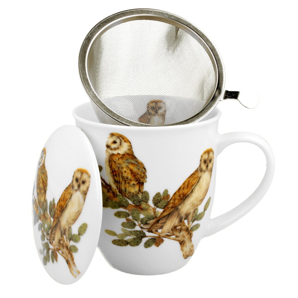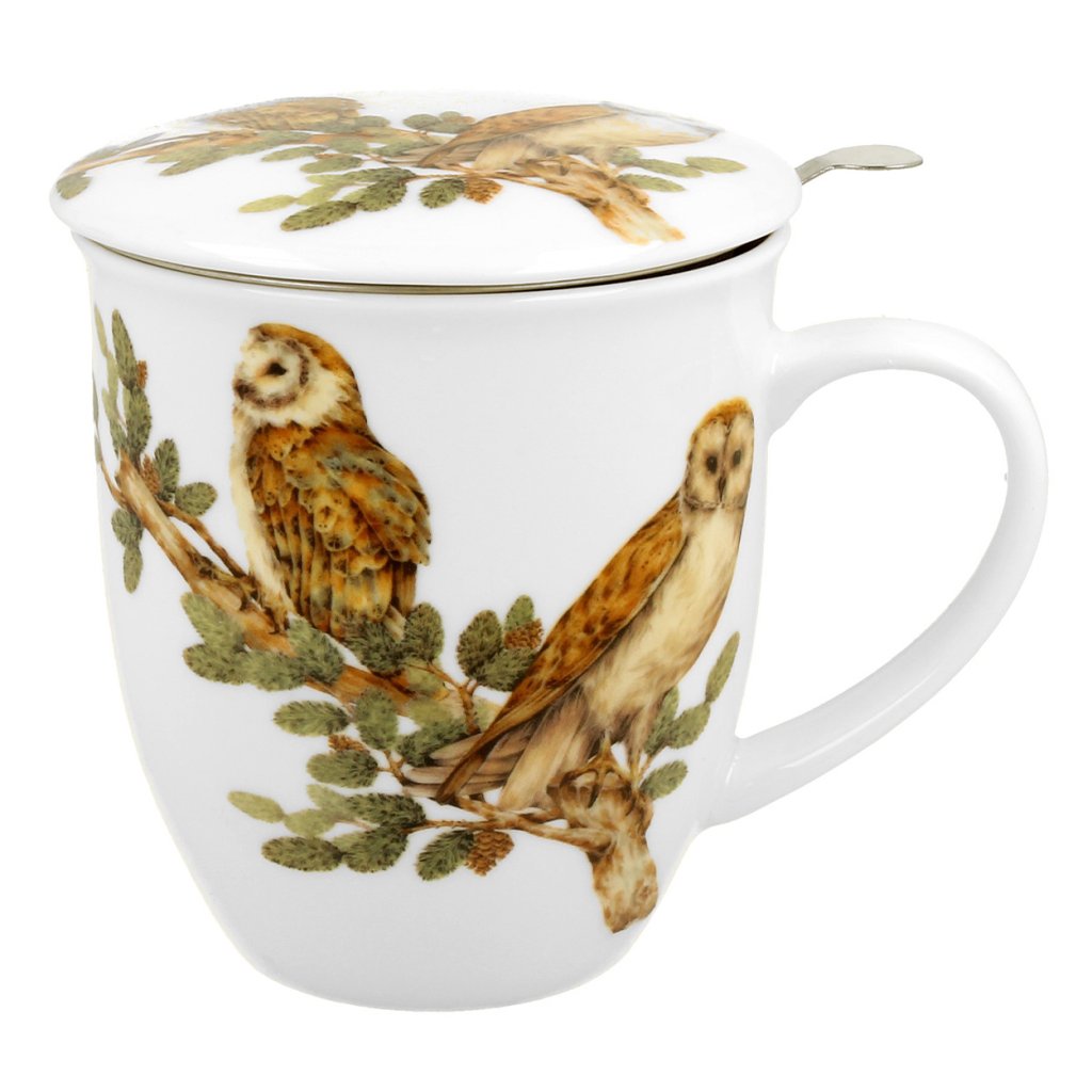 Čajová souprava Owls o objemu 400 ml je praktickým a elegantním řešením pro všechny milovníky čaje, přírody a jemně dekorovaných doplňků. Porcelánový hrnek se sítkem je vyroben z kvalitního porcelánu v krémovo-bílém odstínu s jemným leskem, který je známý svou lehkostí , odolností a estetickým vzhledem.