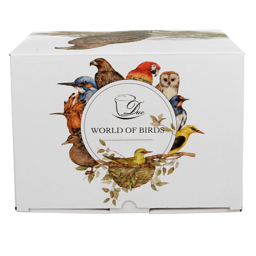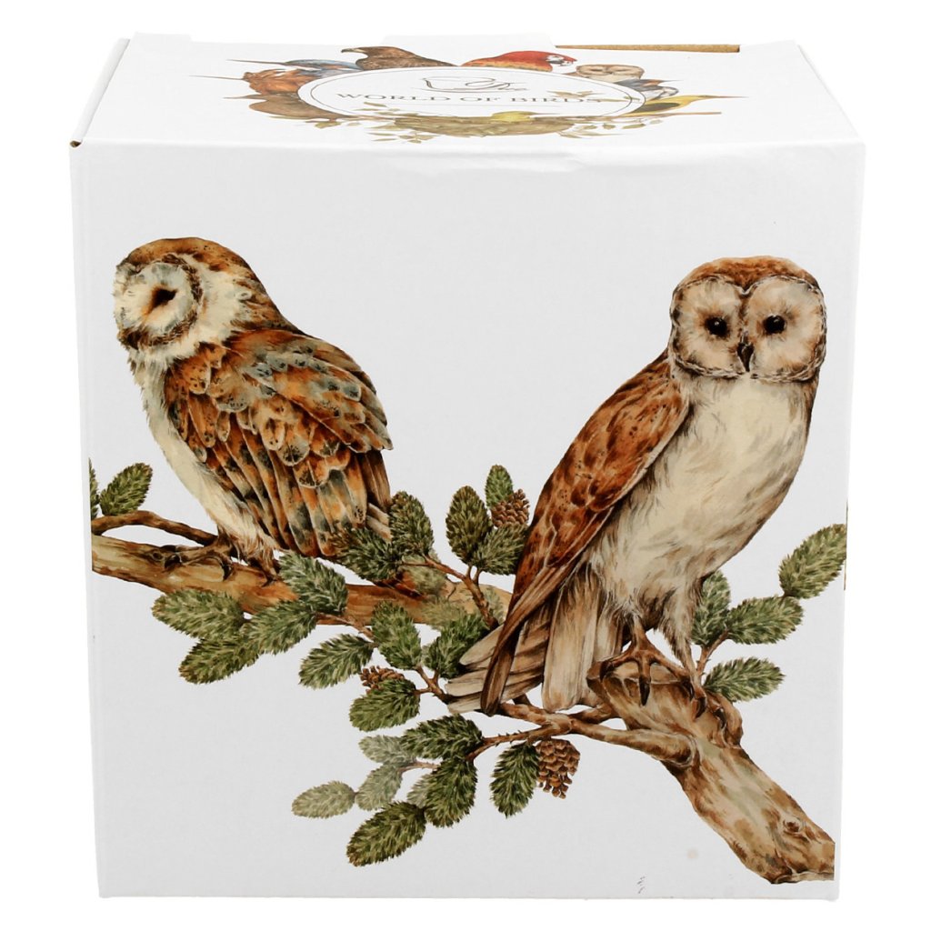 Hrnek zdobí detailní motiv sov sedících na větvičce, který dodává kolekci Owls originální, přírodní a nadčasový charakter. Precizně zpracovaná ilustrace působí elegantně a harmonicky, takže se čajová souprava stává nejen praktickým každodenním doplňkem, ale také dekorativním prvkem, který vynikne v interiéru.