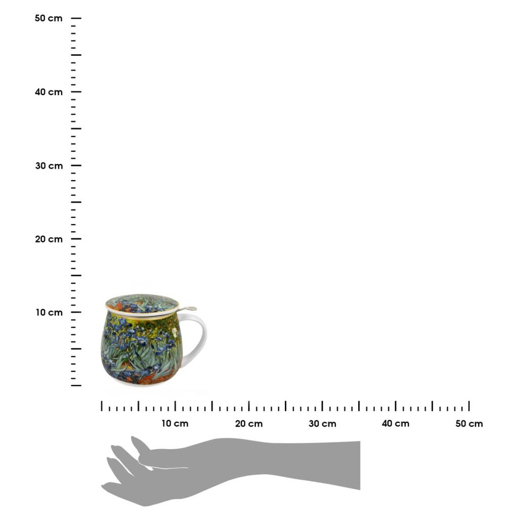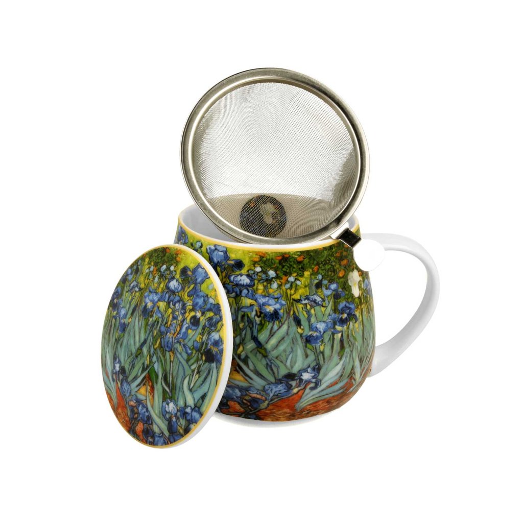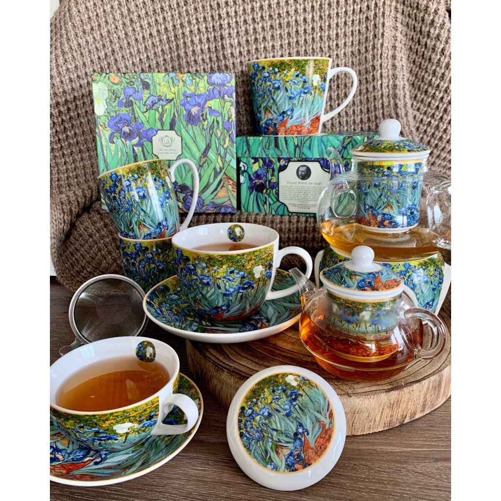 Čajová souprava Van Gogh Irises o objemu 430 ml je spojením praktičnosti a uměleckého stylu. Inspirovaná slavným motivem kosatců od Vincenta van Gogha, obohatí každý čajový rituál o jedinečnou estetiku. Elegantní balení z ní činí ideální tip na dárek pro milovníky čaje i umění.