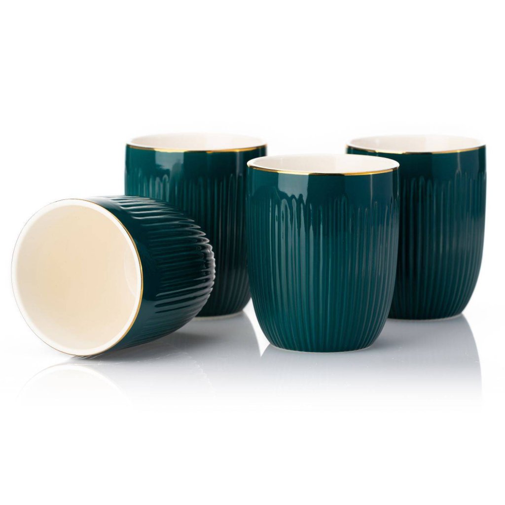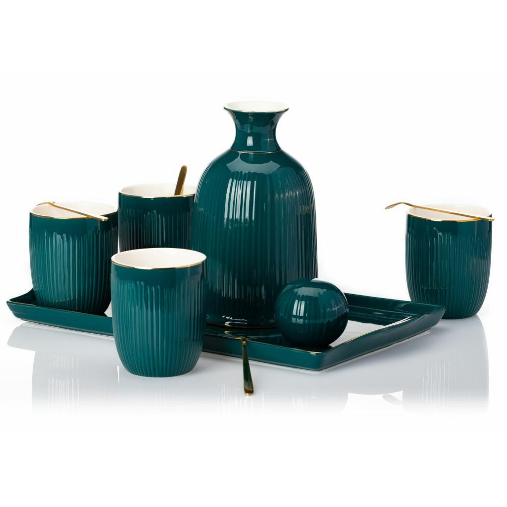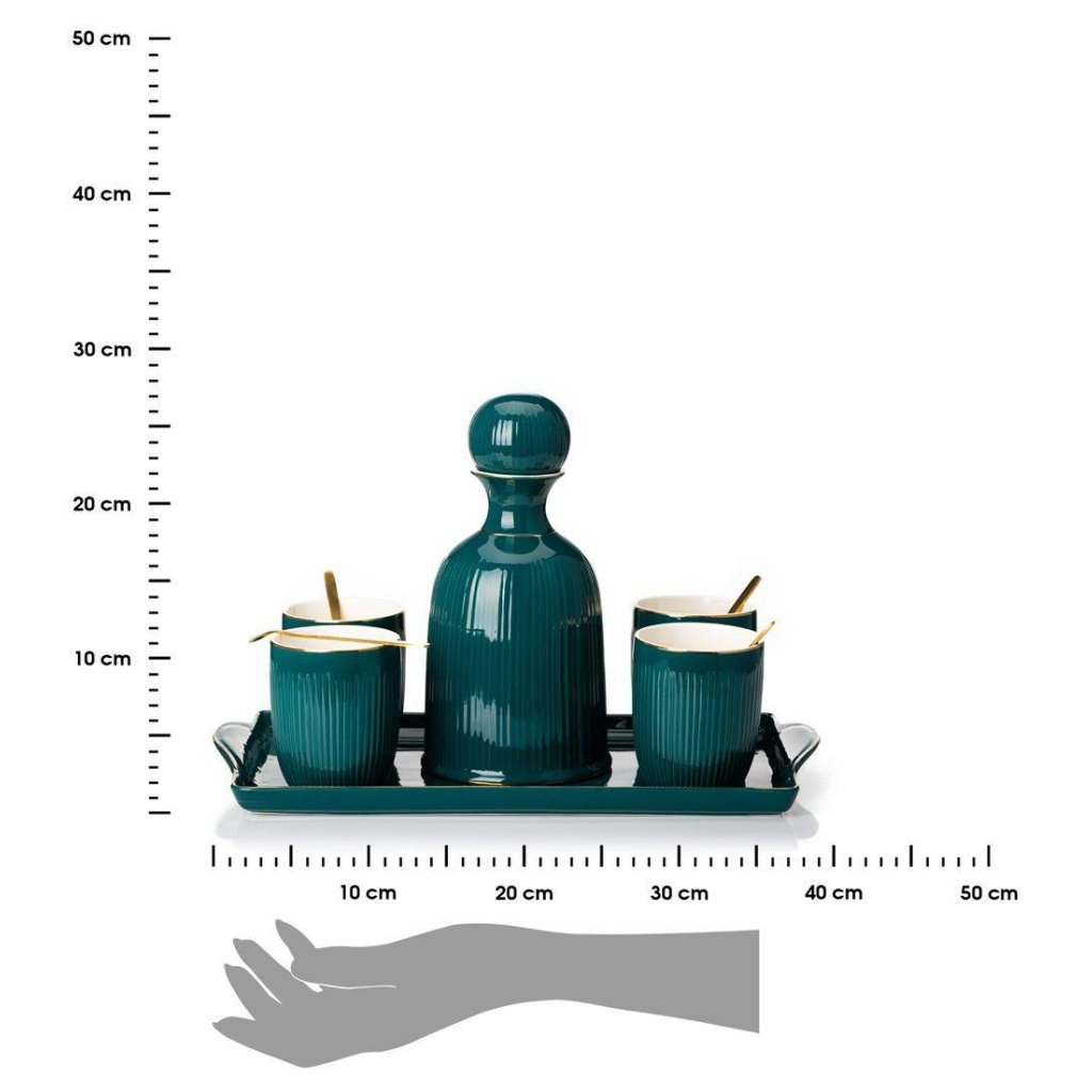 Stylová čajová/kávová souprava HowHomely. Poháry a karafa jsou vyrobeny z keramiky se zlatými doplňky. Žebrovaný povrch poskytuje pevné uchopení a zabraňuje sklouznutí nádoby. Set obsahuje karafu, 4 sklenice, 4 zlaté lžičky a podnos.Buďte první, kdo napíše příspěvek k této položce.