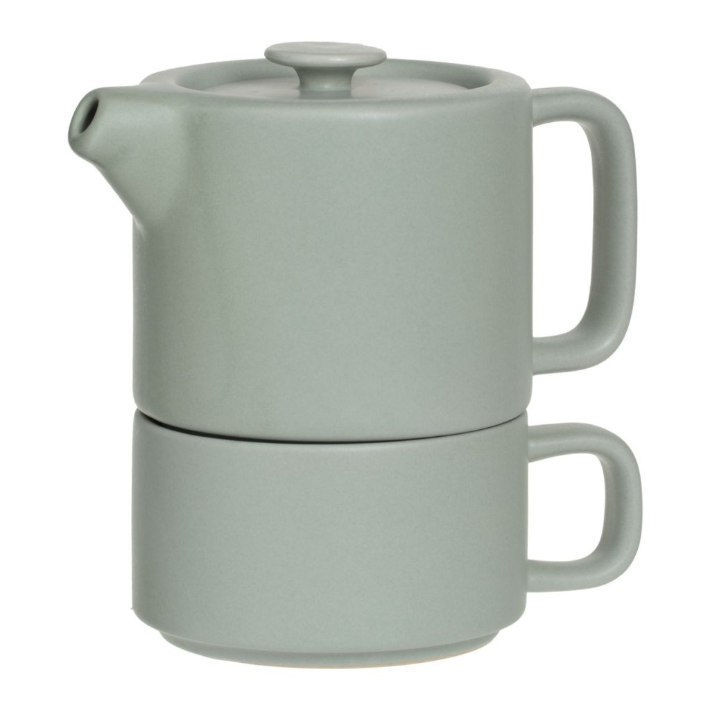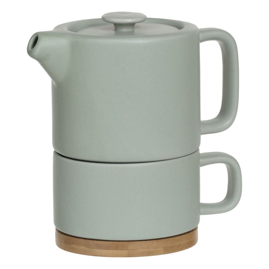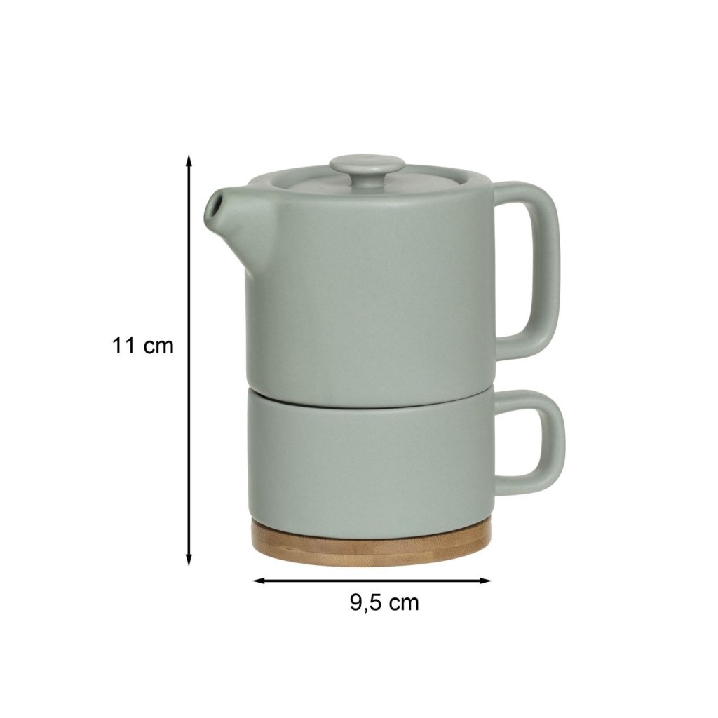 Čaj uvařený v krásné a stylové konvici činí jeho pití ještě příjemnějším! Set sestávající z konvice a šálku působí originálně a esteticky, přičemž zabírá málo místa. Džbán a šálek jsou vyrobeny z kvalitní keramiky, která umožňuje extrahovat z čaje to pravé aroma, a tak si naplno vychutnat jeho jedinečnou chuť. Součástí sady je také dřevěný stojan, který chrání povrch před vysokými teplotami a dodává celku přirozený vzhled. Set je skvělým tipem na dárek.Rozměry