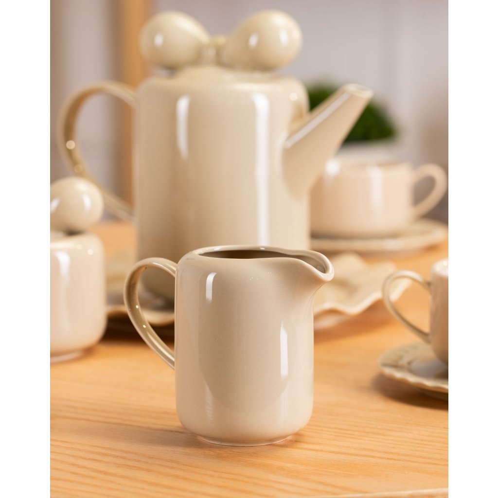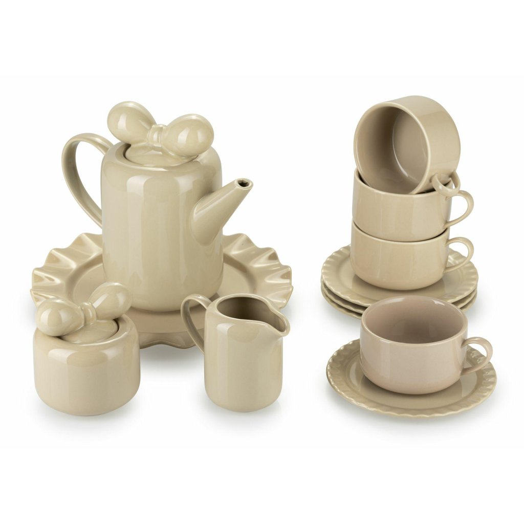 Stylová čajová/kávová souprava Sofia Beige. Set obsahuje čtyři šálky s talířky, konvičku s talířem, cukřenku a konvičku na mléko. je set Sofie ideálním řešením pro různá setkání. Skvěle se bude hodit do každého interiéru a vnese do něj trochu klasického a svěžího stylu.Doplňkové parametry
