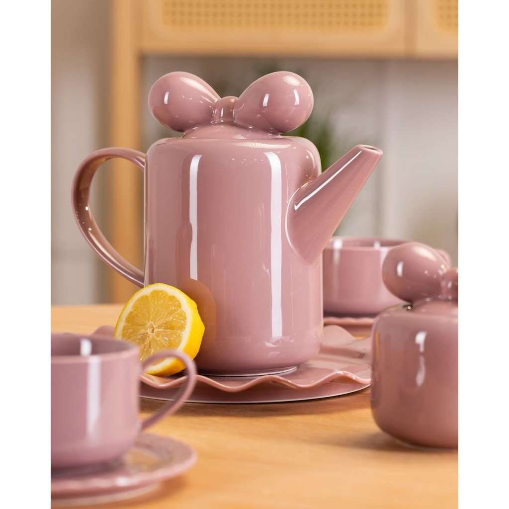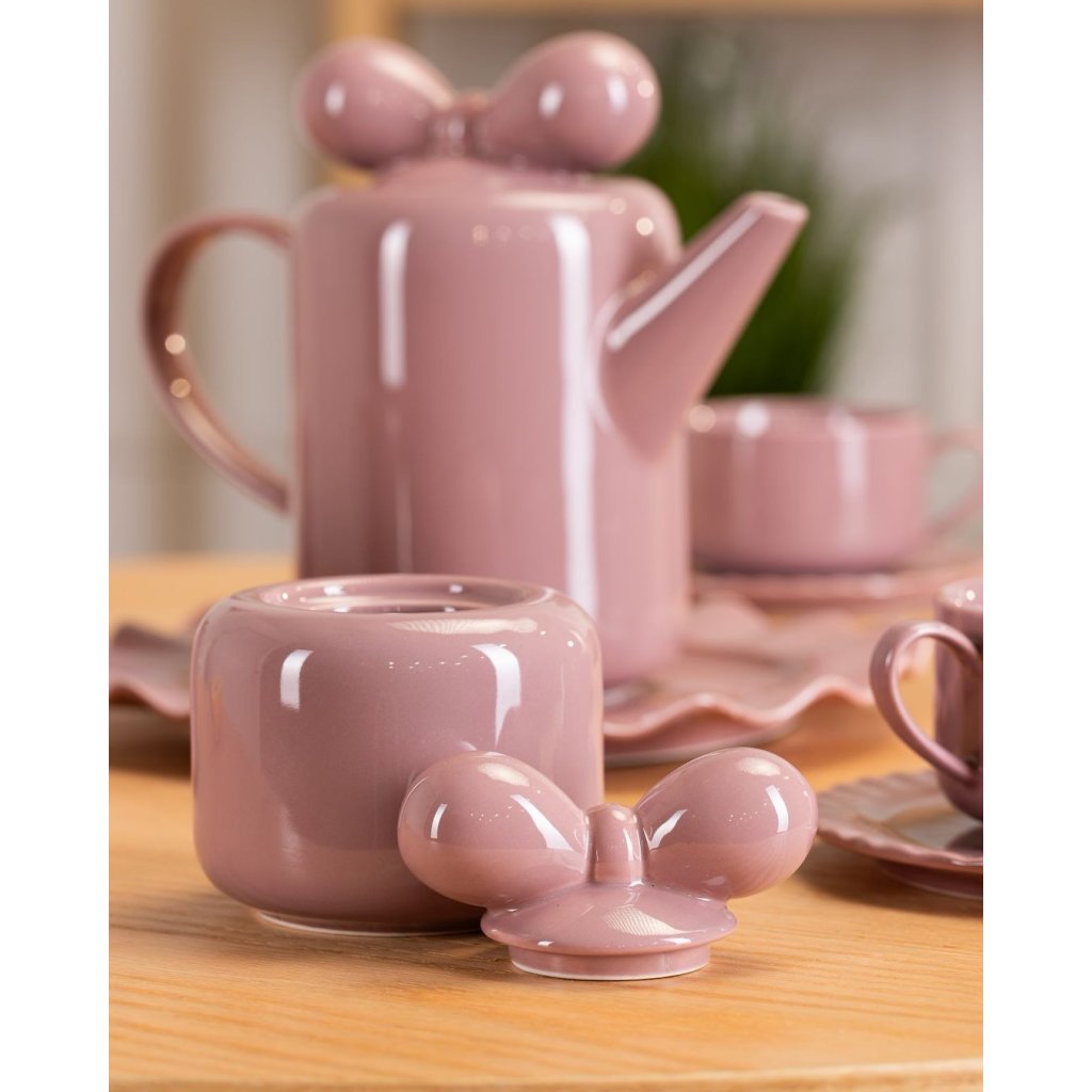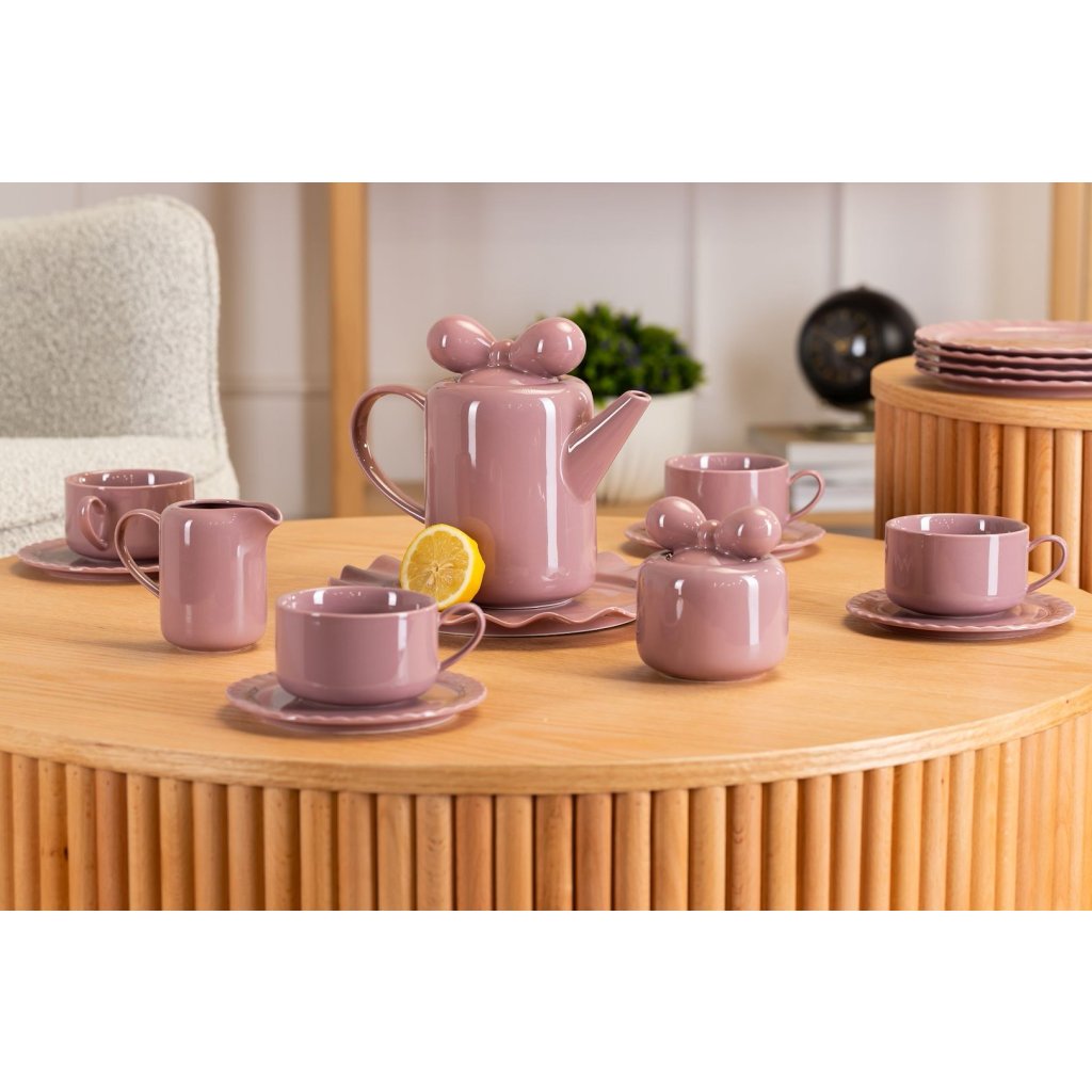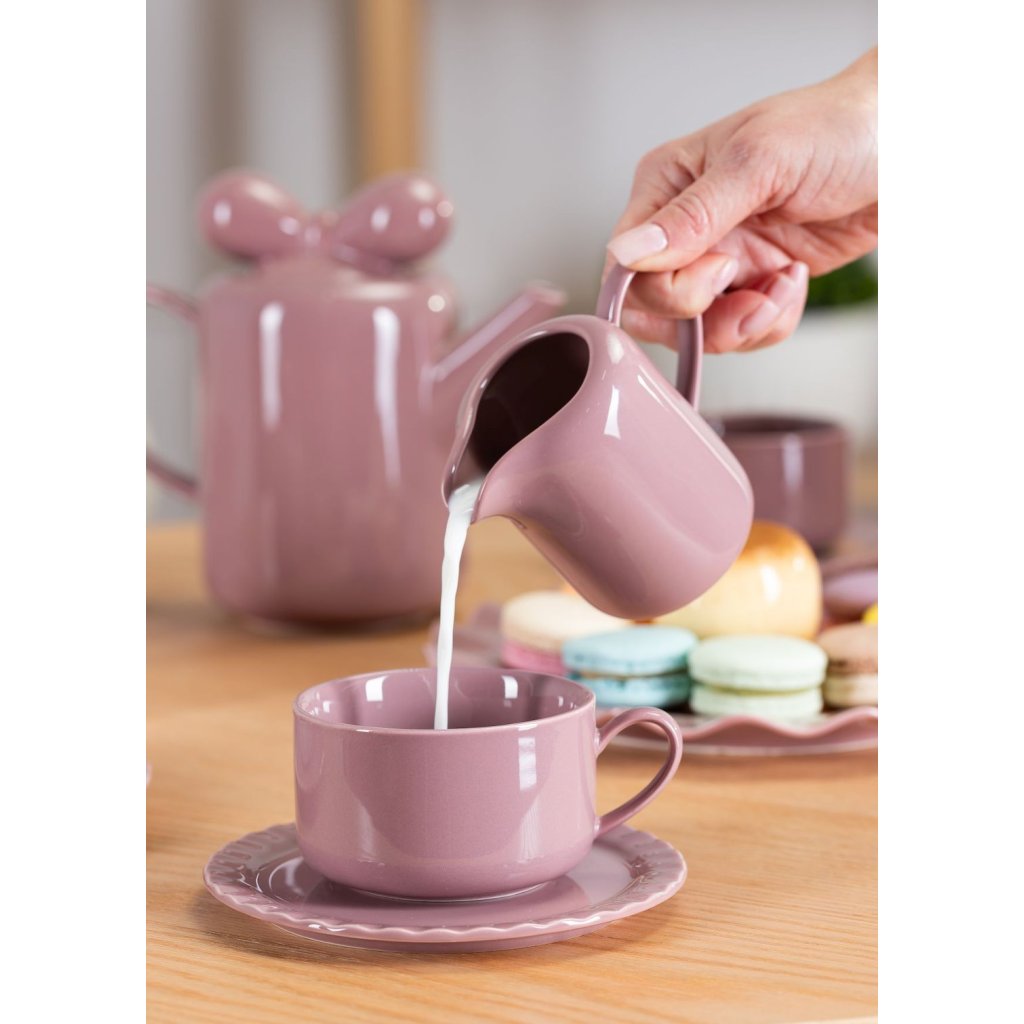 Stylová čajová/kávová souprava Sofia Pink. Set obsahuje čtyři šálky s talířky, konvičku s talířem, čtyři talíře, cukřenku a konvičku na mléko. zvlněným okrajem talířů je set Sofie ideálním řešením pro různá setkání. Skvěle se bude hodit do každého interiéru a vnese do něj trochu klasického a svěžího stylu.Doplňkové parametry