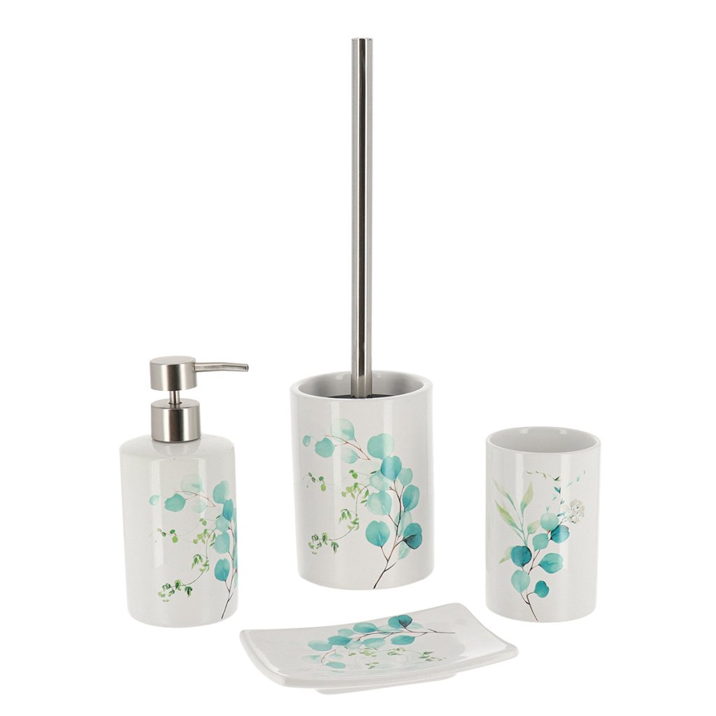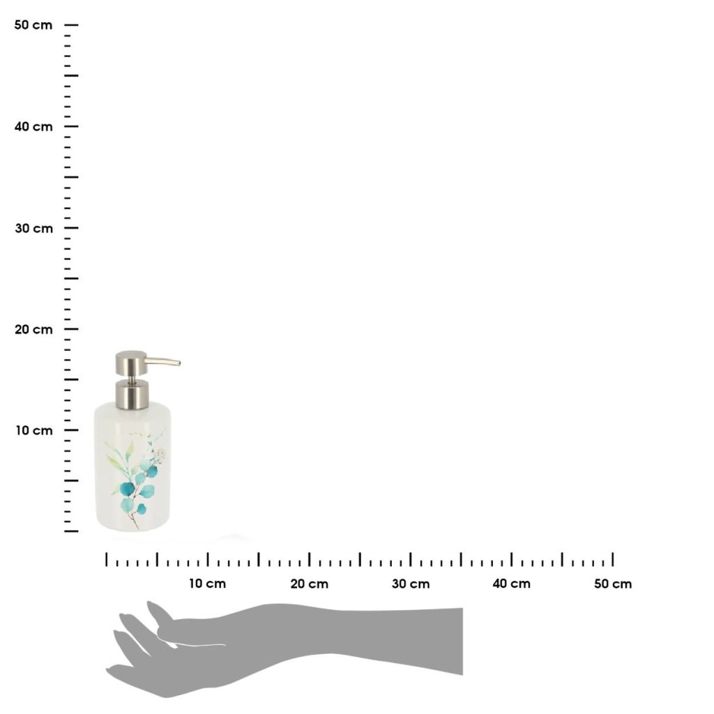 Keramický dávkovač na mýdlo Aquarelle Eukaliptus zaujme jemným motivem eukalyptových větviček , který vnáší do koupelny nádech čistoty a elegance . Lesklý bílý povrch v kombinaci s pastelově zelenomodrými listy působí svěže a vkusně. Chromová pumpička z nerezavějící oceli dodává moderní vzhled a zároveň zajišťuje praktické a trvanlivé používání . Tento dávkovač je vhodný na tekuté mýdlo, tělové mléko nebo prostředek na nádobí , takže si najde své místo nejen v koupelně, ale také v kuchyni. Je součástí elegantní kolekce doplňků, kterou lze doplnit o sklenici, mýdelničku a WC kartáč se stejným motivem. Ideální pro ty, kteří mají v oblibě přírodní prvky a sladěná interiérová řešení .