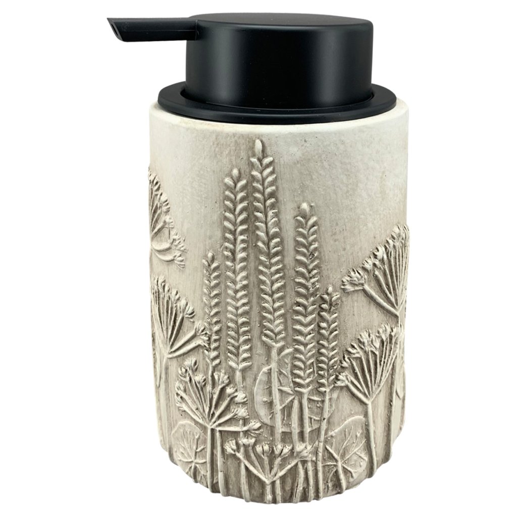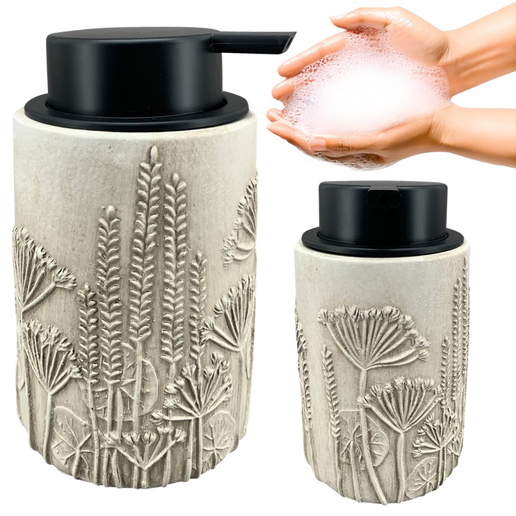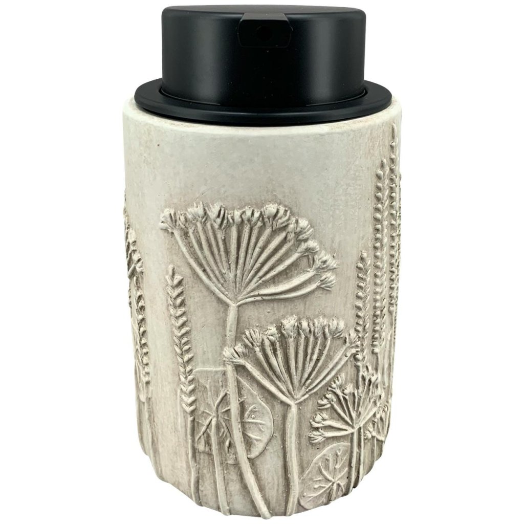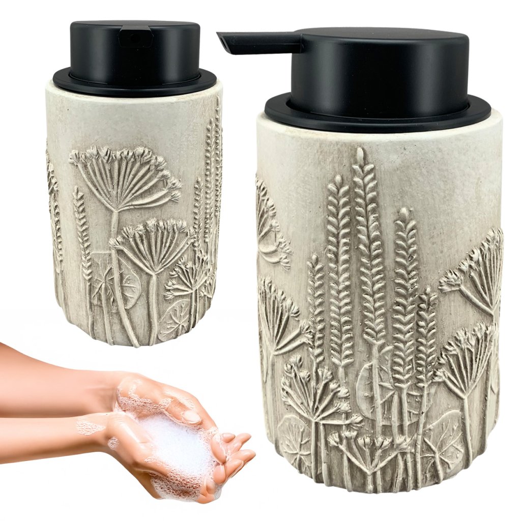 Dávkovač mýdla Maya zaujme svojí minimalistickou formou a jemným reliéfním vzorem s rostlinným motivem , který zdobí povrch výrobku. Vyroben je z pevného cementu s přirozeným vzhledem a matnou povrchovou úpravou v tlumené šedé barvě.