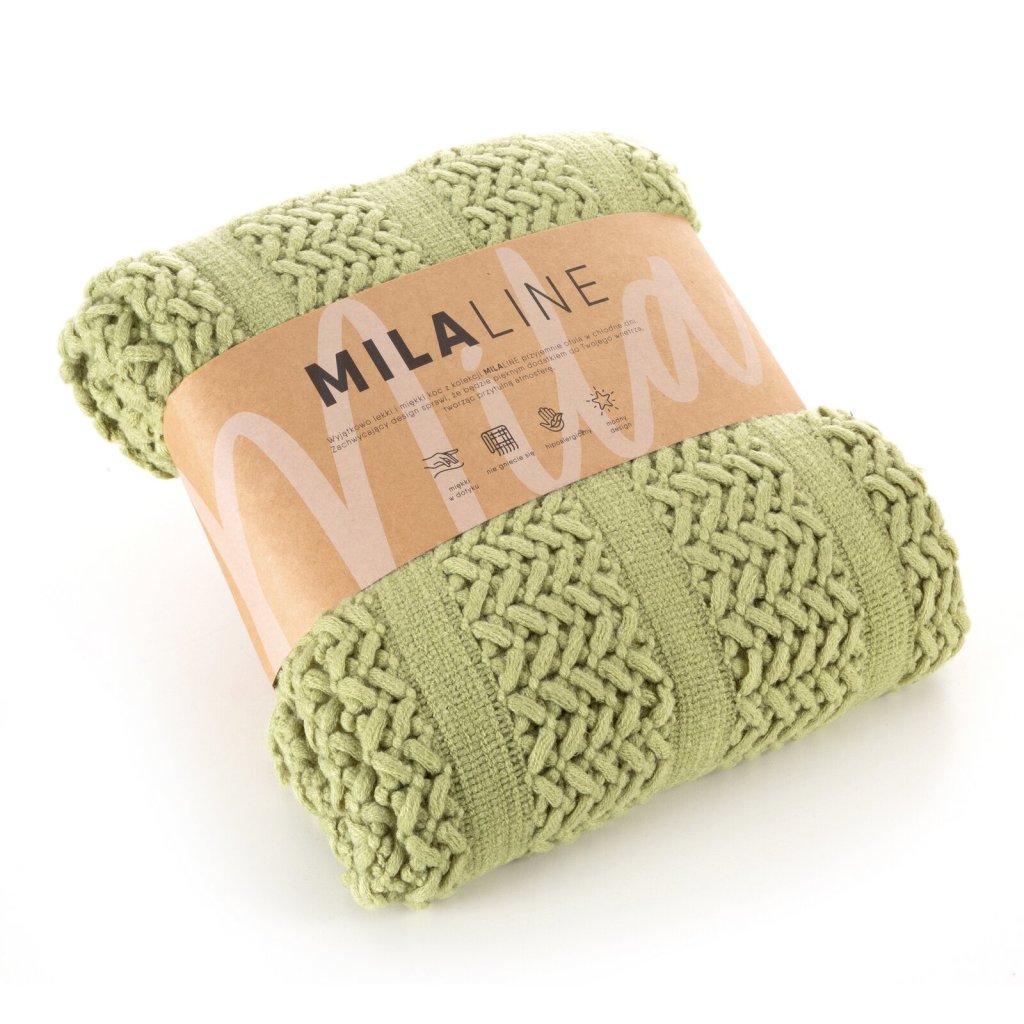 Pletená akrylová deka šířka: 130 cm, délka: 170 cm, barva: světle zelená, hmotnost: 215 GSM, složení: 100% akrylDoplňkové parametry
