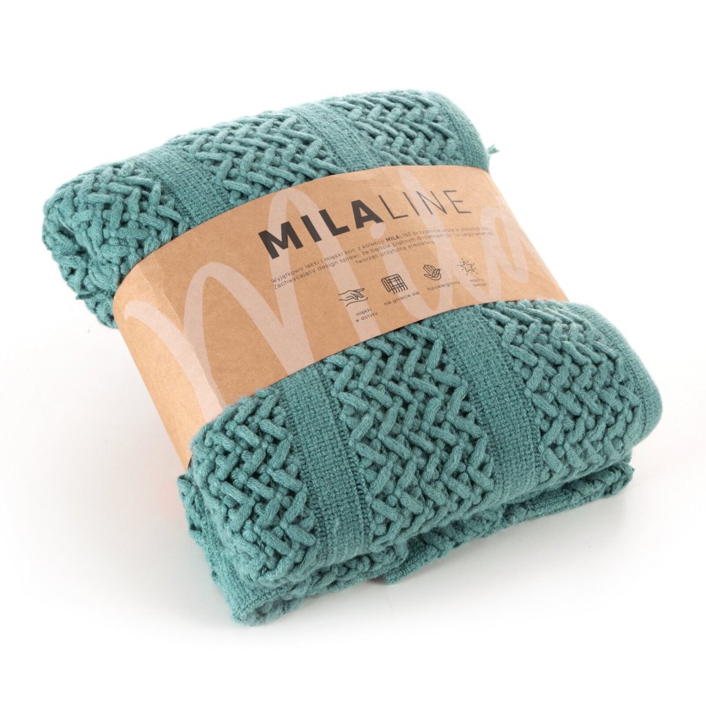 Pletená akrylová deka šířka: 130 cm, délka: 170 cm, barva: tmavě mátová, gramáž: 215 GSM, složení: 100% akryl.Doplňkové parametry