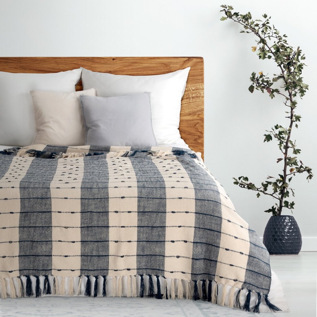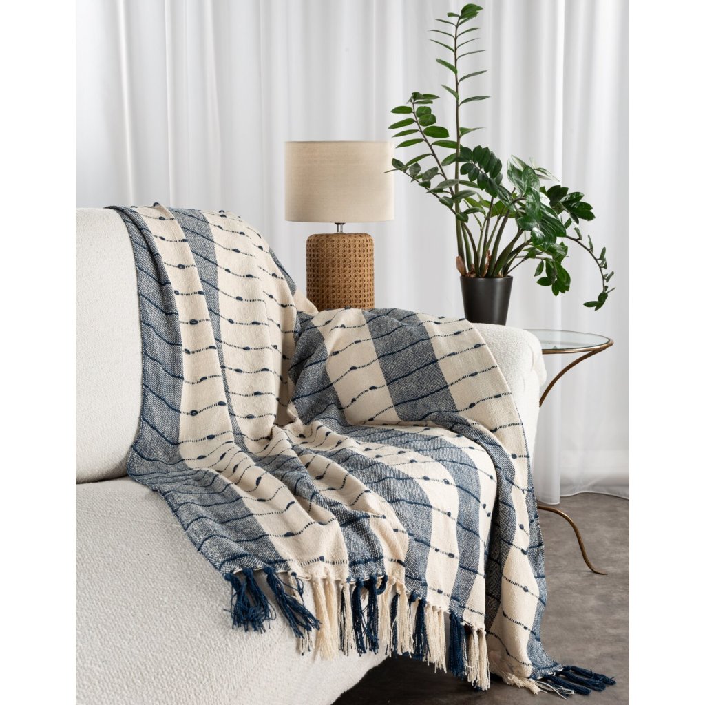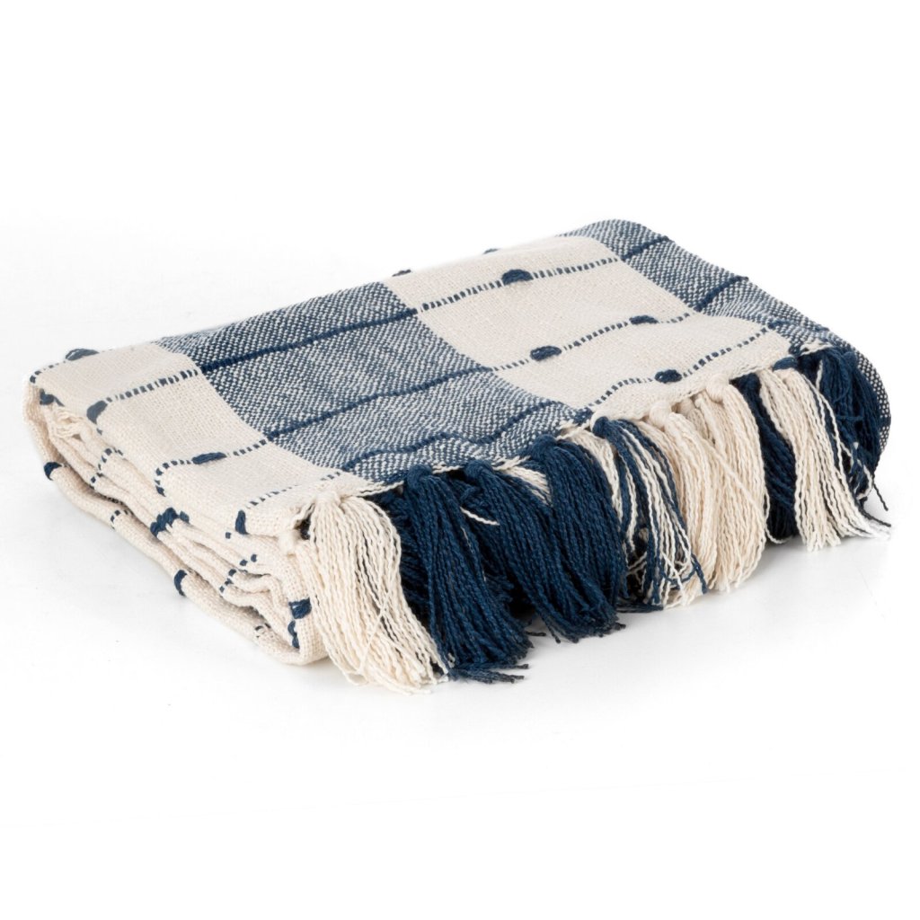 Tkaná deka s kostkovaným vzorem a střapci, šířka: 130 cm, délka: 170 cm, barva: tmavě modrá/béžová, hmotnost: 340 GSM, složení: 100% polyester.Doplňkové parametry