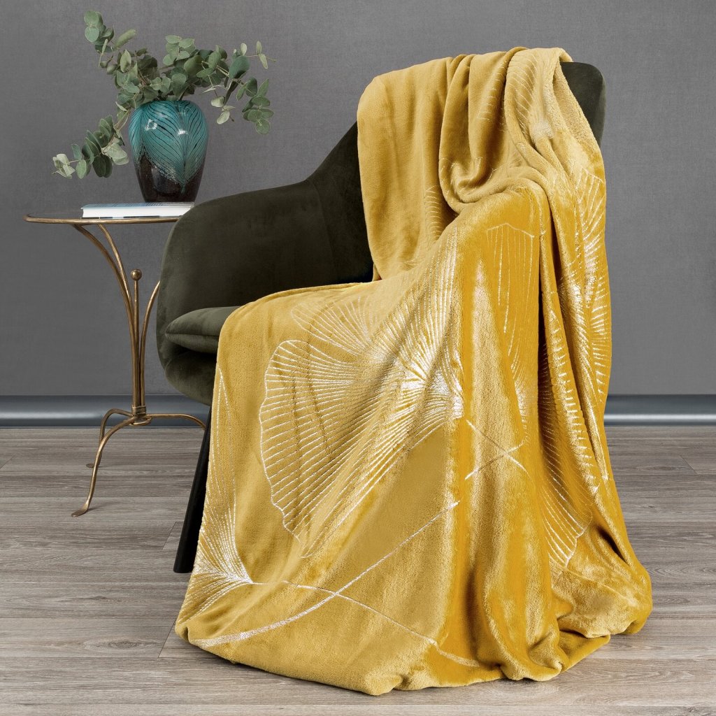 Deka velmi jemná na dotek s lesklým potiskem, šířka: 150 cm, délka: 200 cm, barva: medová, hmotnost: 250 GSM, složení: 100% polyester.Doplňkové parametry