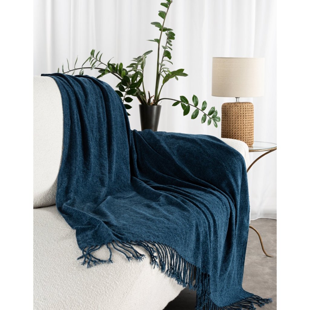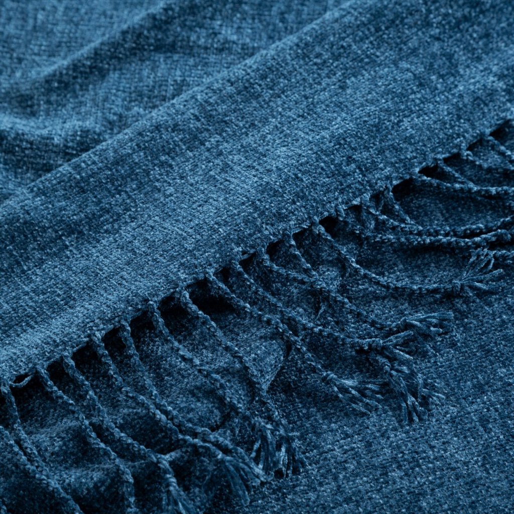 Tkaná deka se střapci, šířka: 130 cm, délka: 160 cm, barva: tmavě modrá, hmotnost: 220 GSM, složení: 100% polyester..